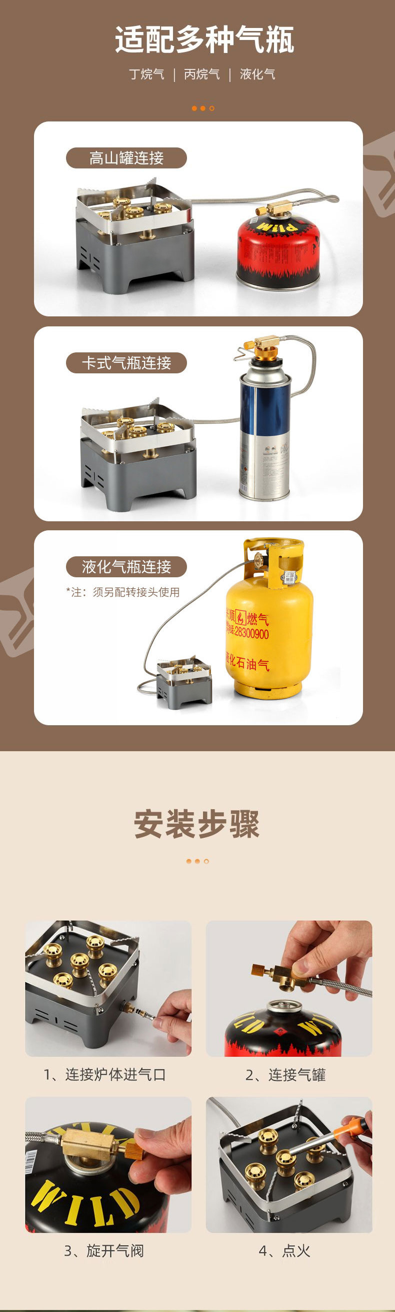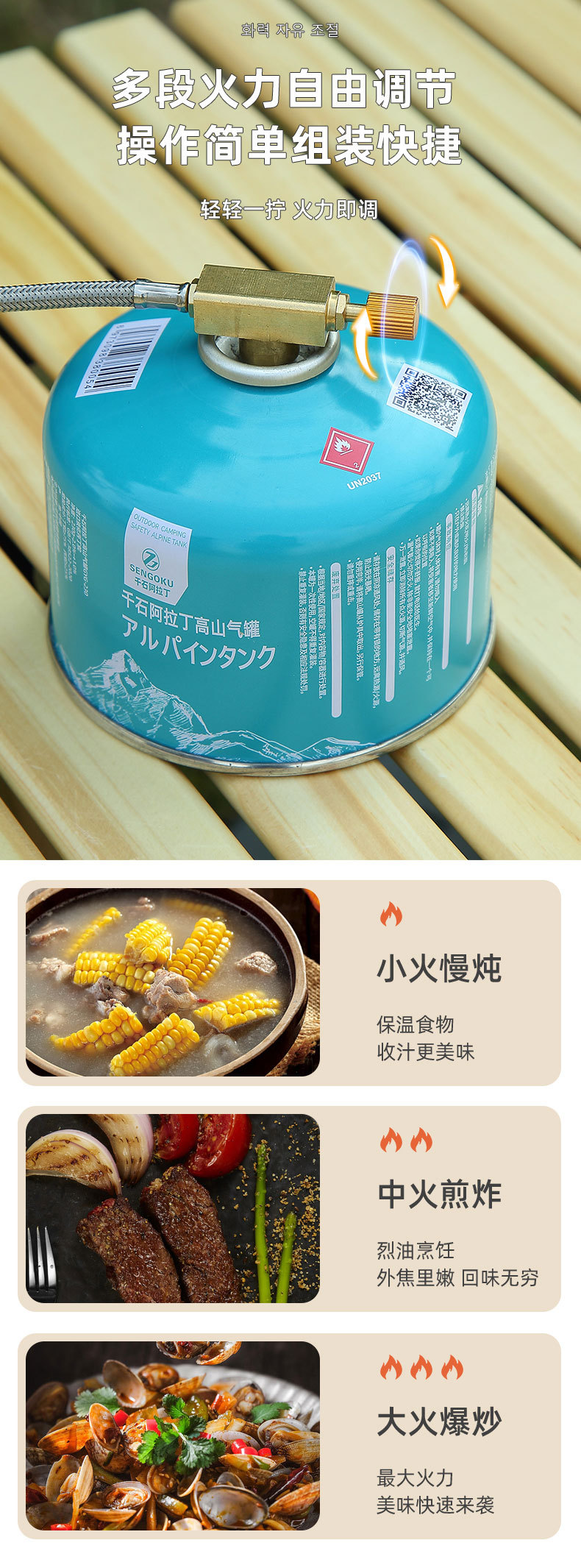 • 5성급 맹렬한 난로 + 220g 카세트 방폭 가스탱크 4병 [캠핑 초보자에게 추천]