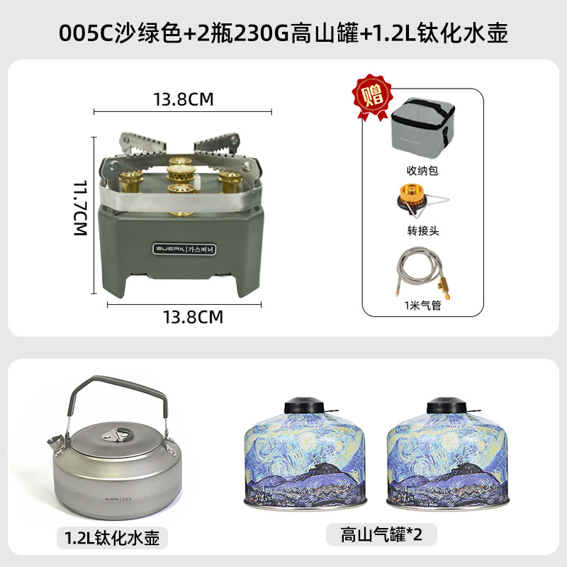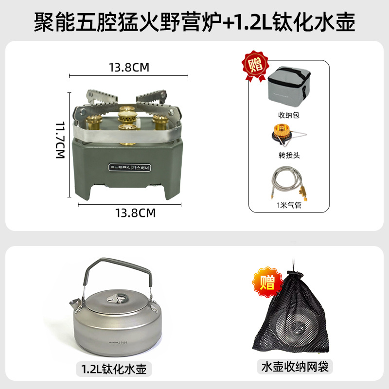 • 5성 강력한 난로 + 230g 산 캔 2병 + 1.2L 티타늄 주전자 [야외 차 마시기용 표준]
