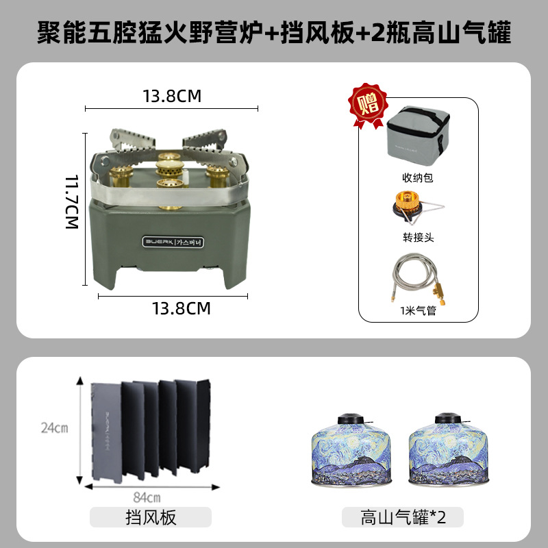 야외 5 성급 스토브 방풍 치열한 스토브 캠핑 카세트 가스 휴대용 캠핑 쿠커 세트 스토브스토어 가기