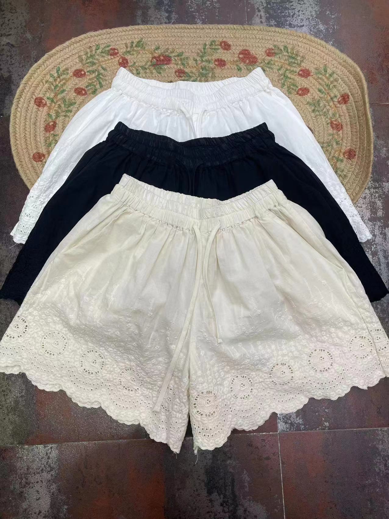 hjm2026 여름 신상 여성 하의 여성 반바지 일본식 3부 바지 자수 하이웨이스트 숲풍 다용도 도매스토어 가기