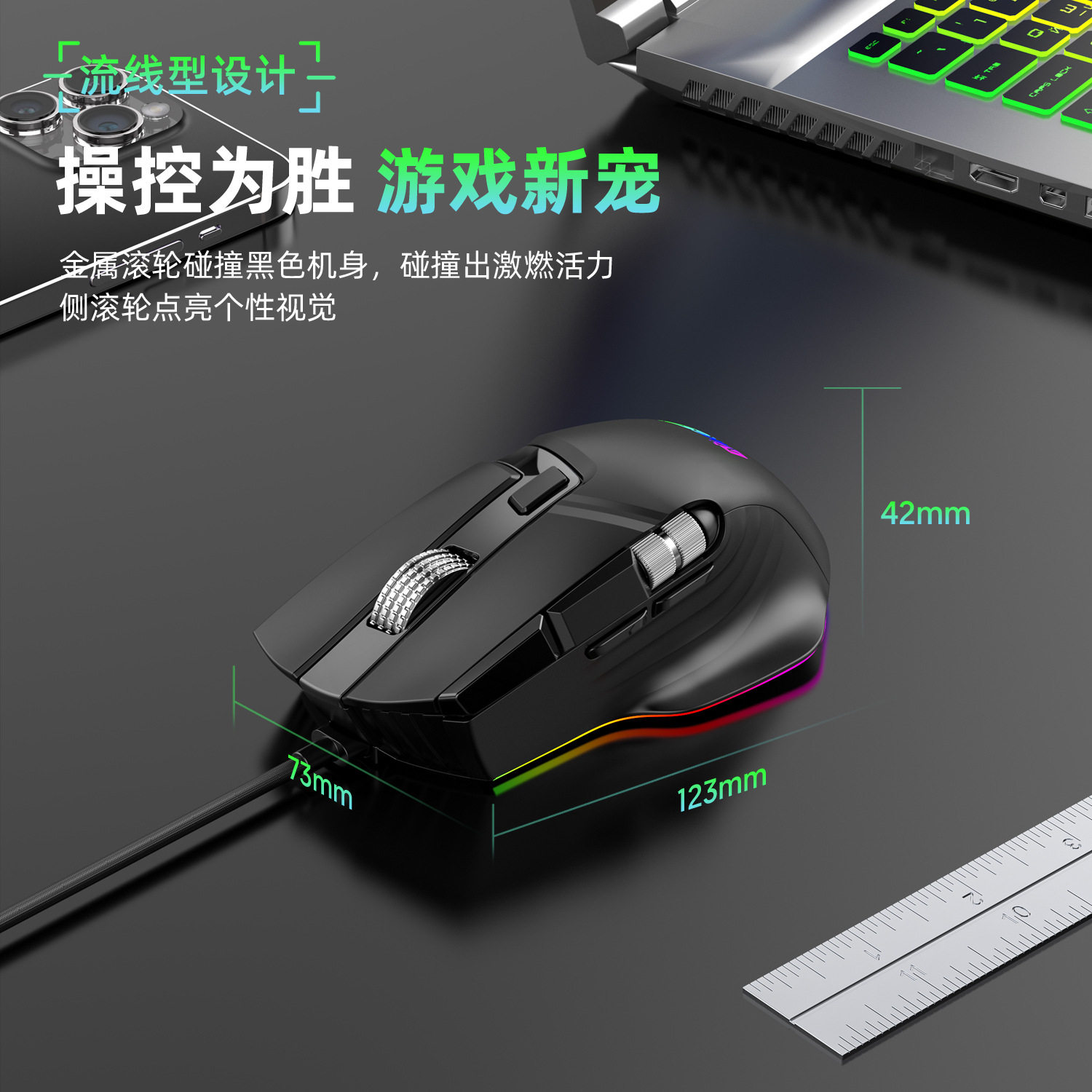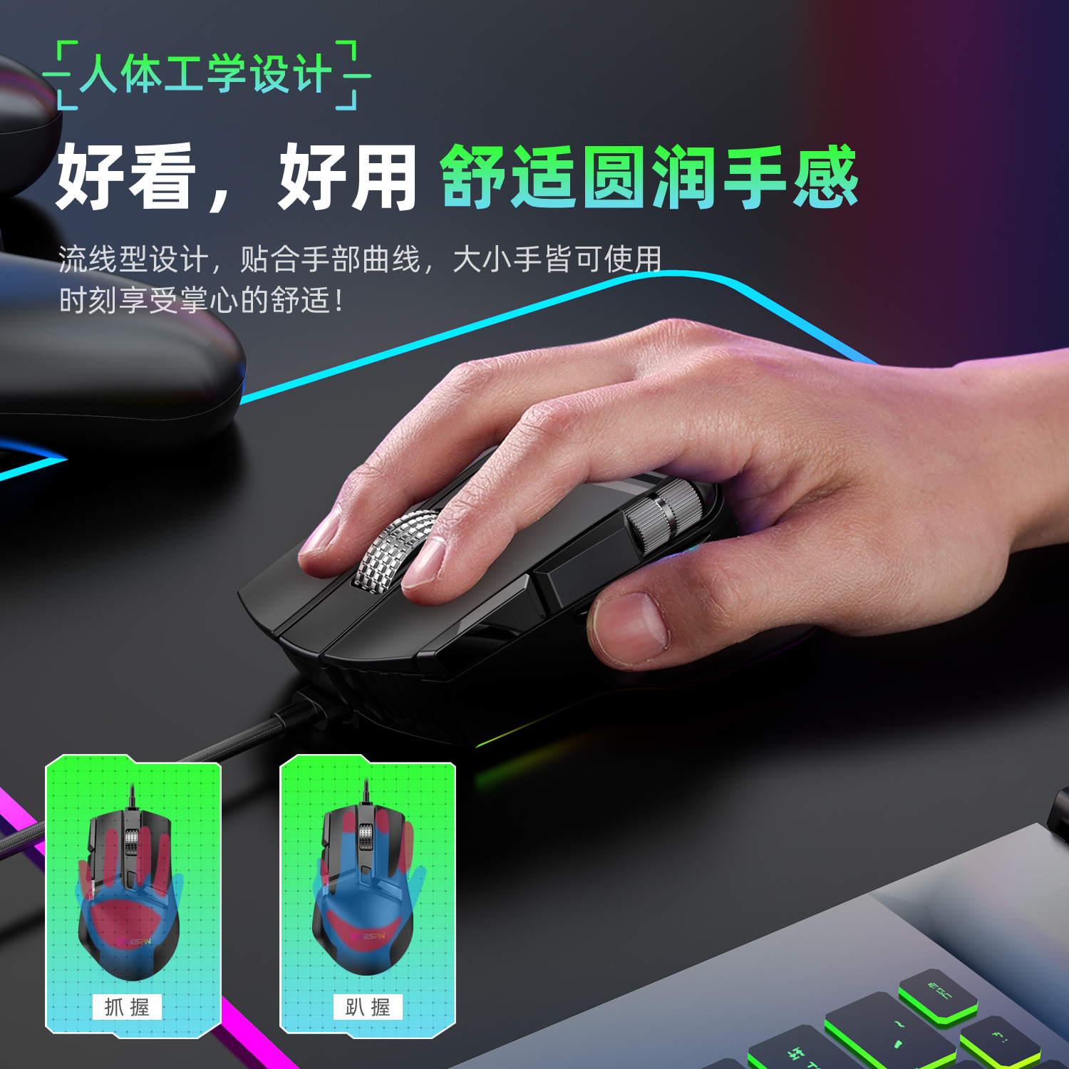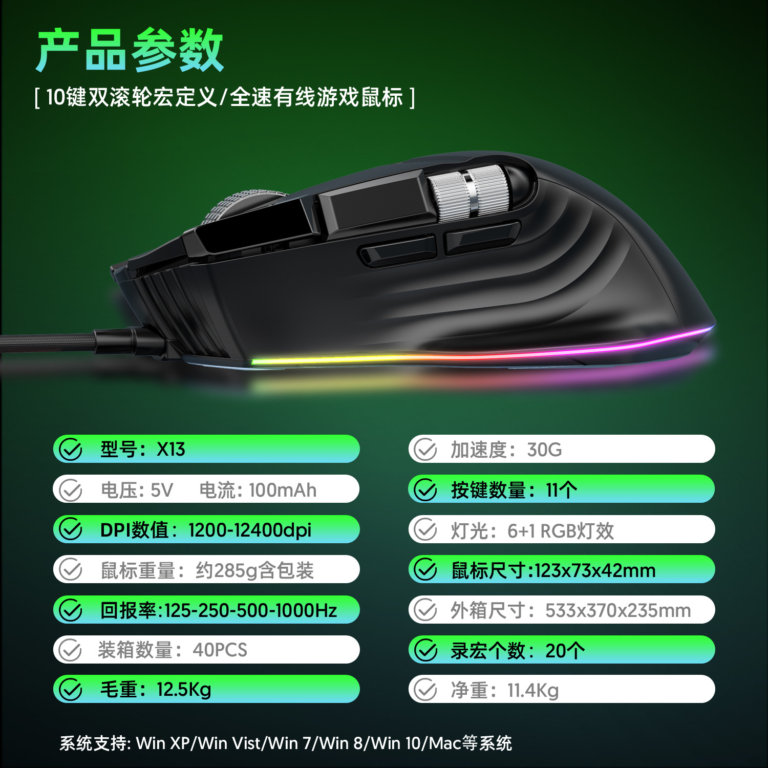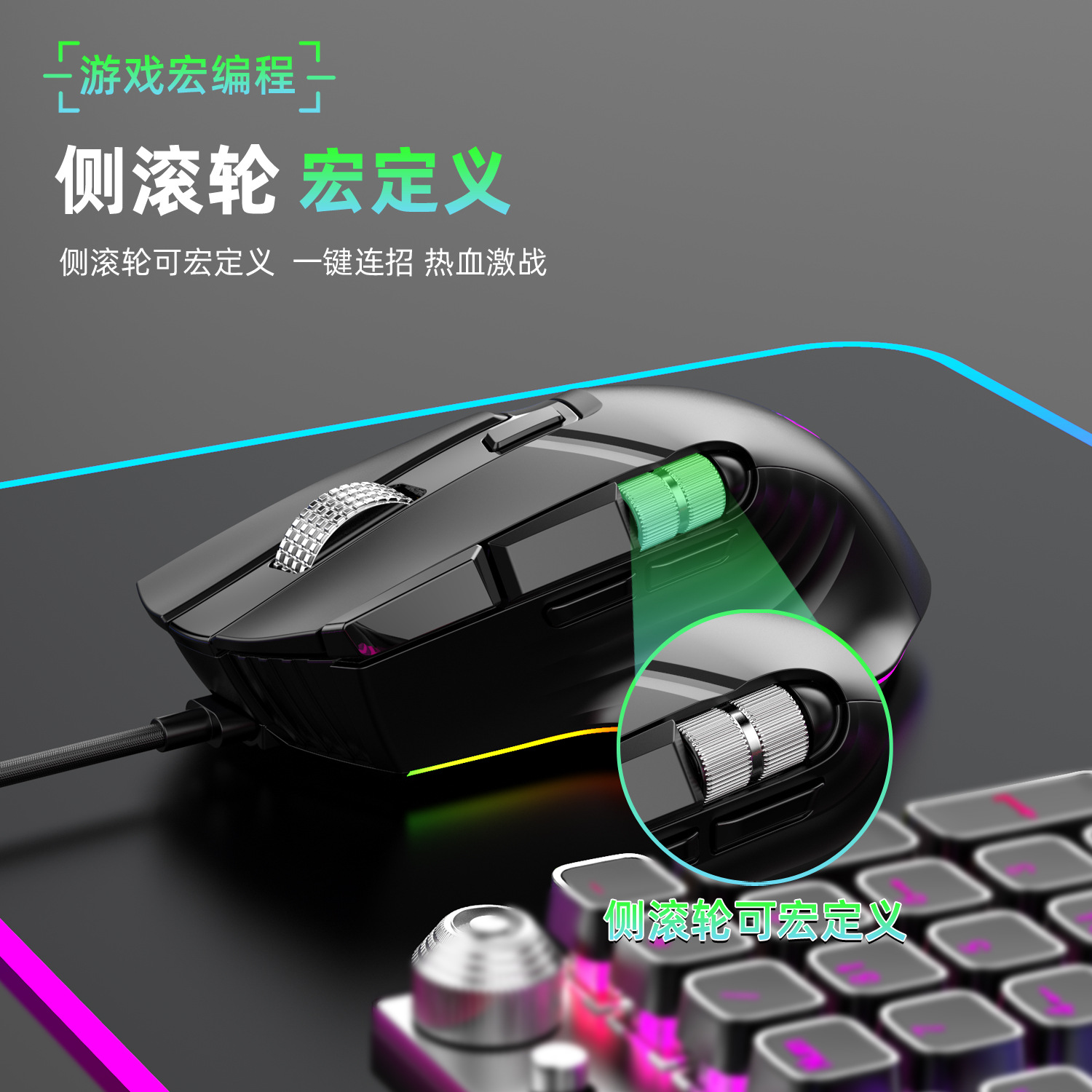 10키 듀얼 롤러 스윙 풀 스피드 RGB 매크로 정의 게임용 마우스, 컴퓨터 액세서리 RGB e스포츠 게임용 마우스