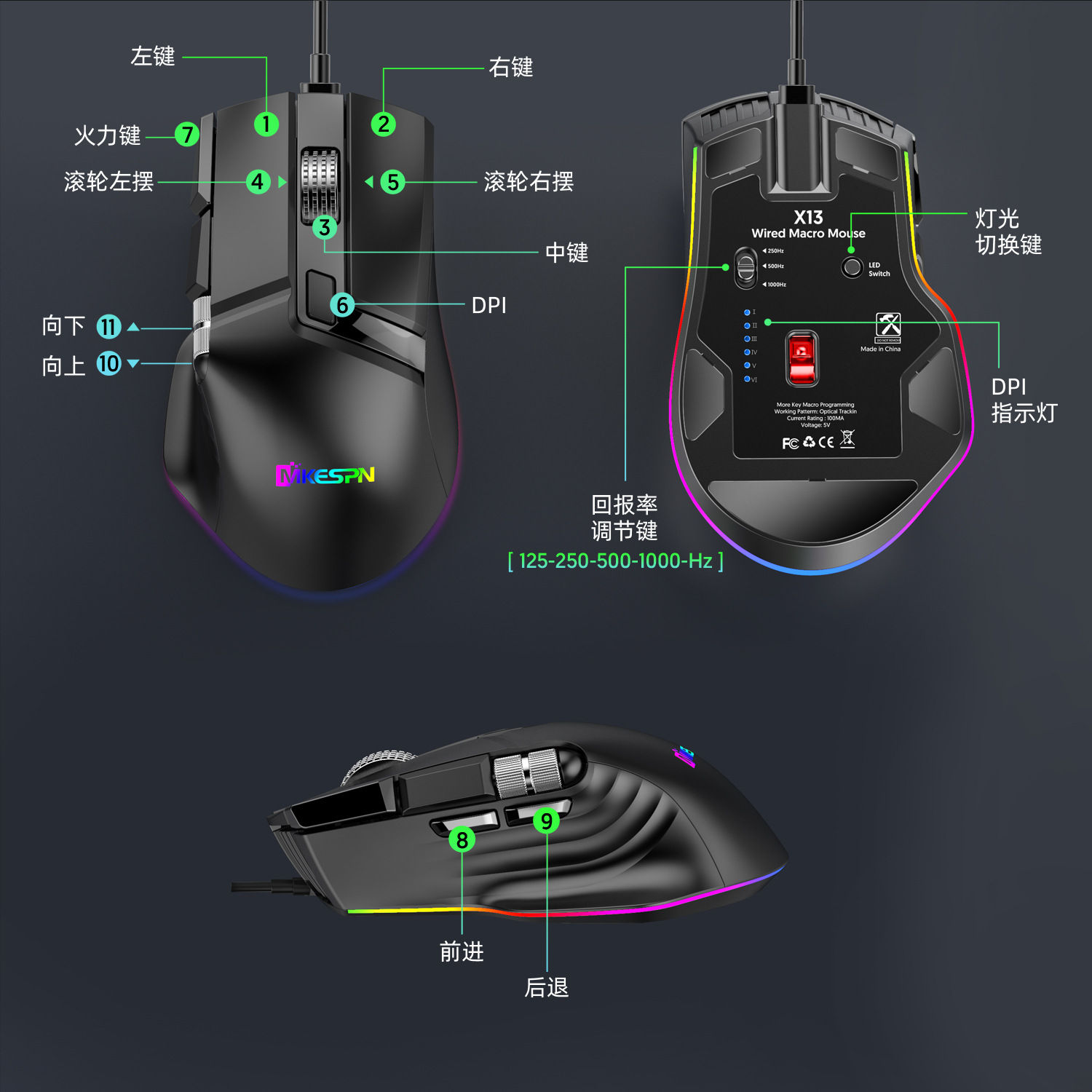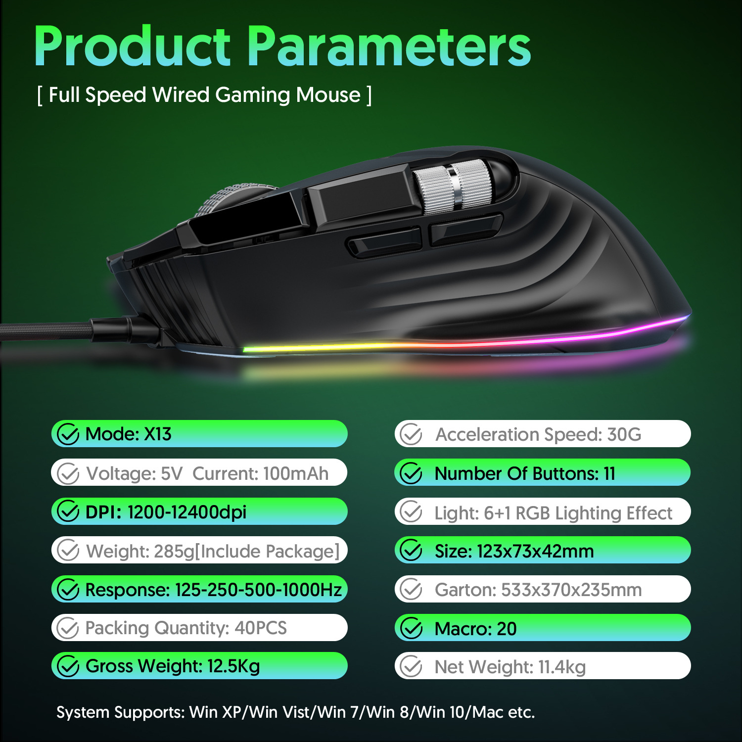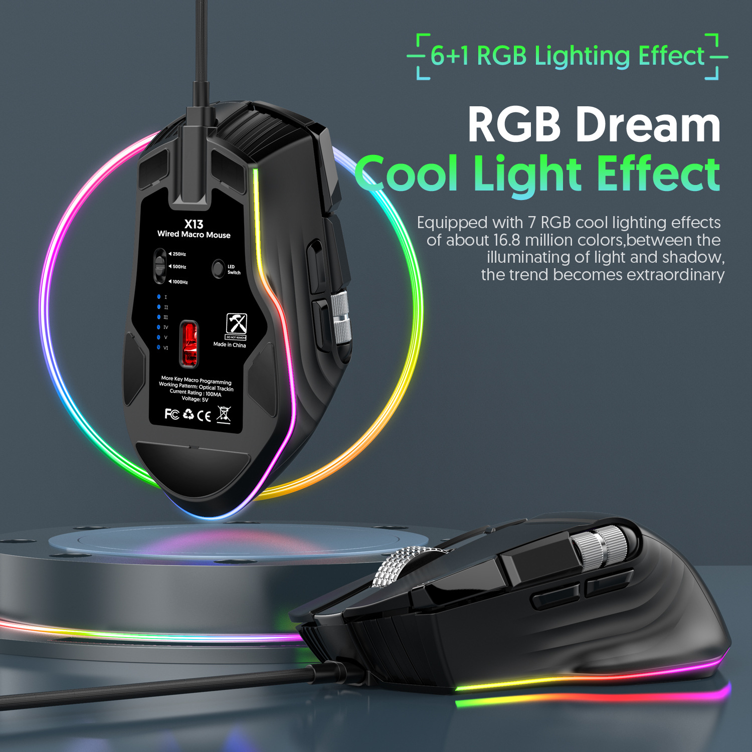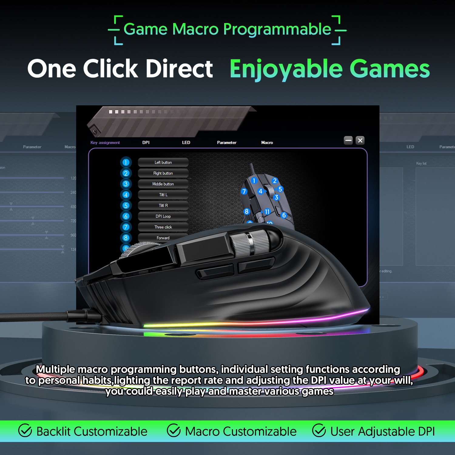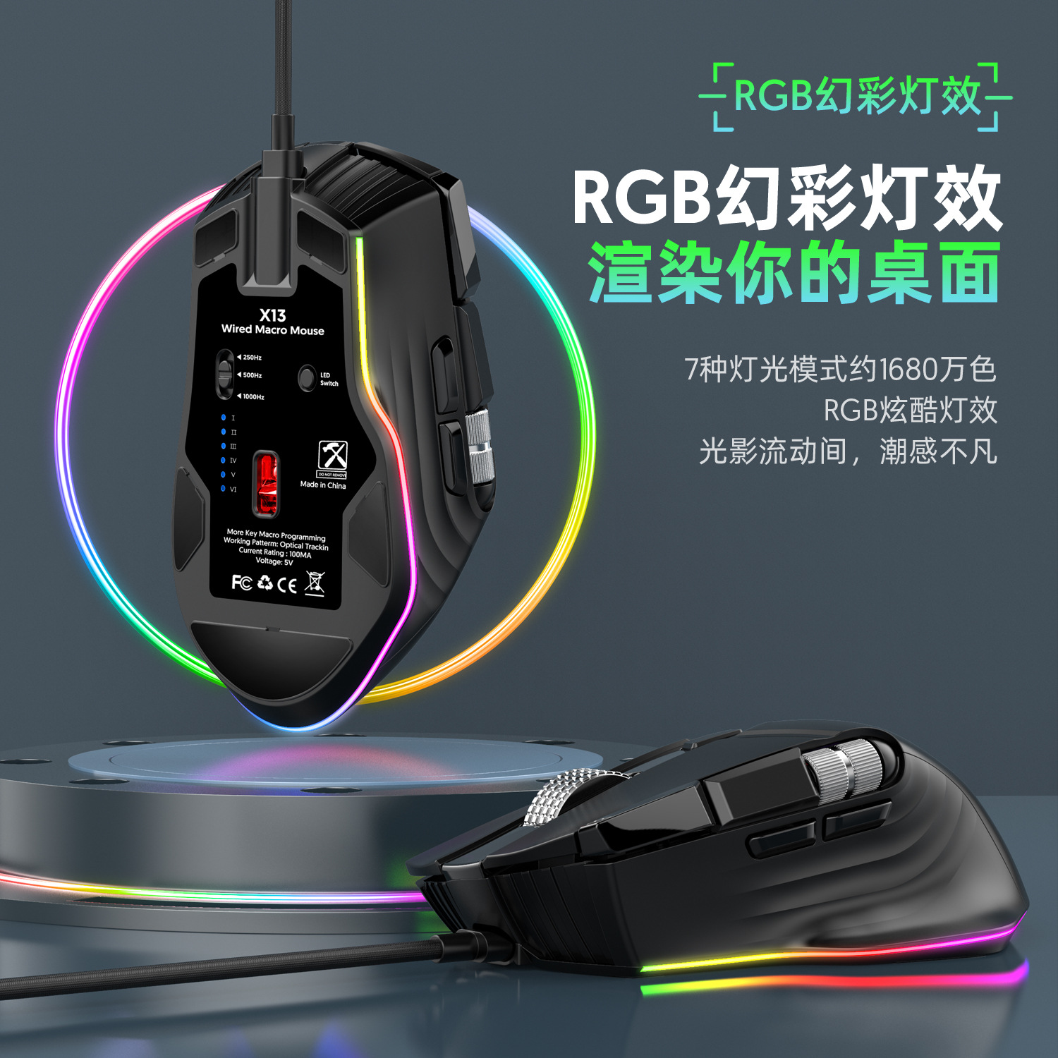 10키 듀얼 롤러 스윙 풀 스피드 RGB 매크로 정의 게임용 마우스, 컴퓨터 액세서리 RGB e스포츠 게임용 마우스