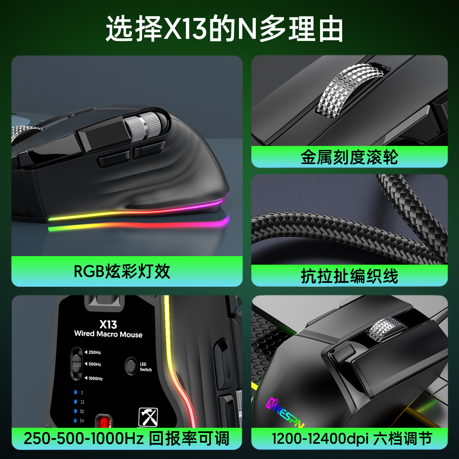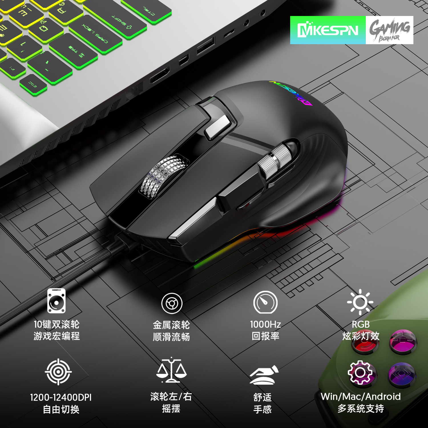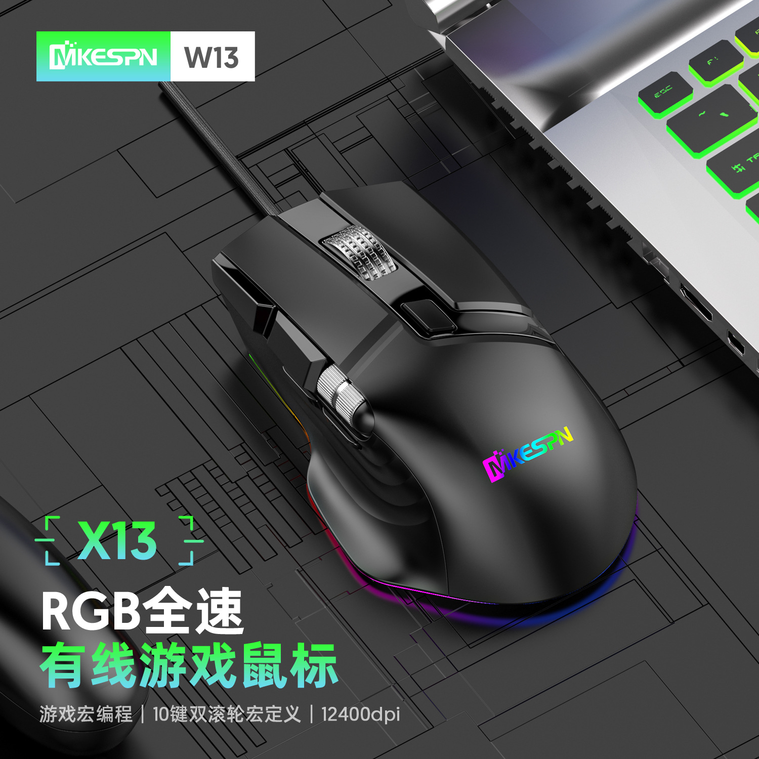 10키 듀얼 롤러 스윙 풀 스피드 RGB 매크로 정의 게임용 마우스, 컴퓨터 액세서리 RGB e스포츠 게임용 마우스스토어 가기