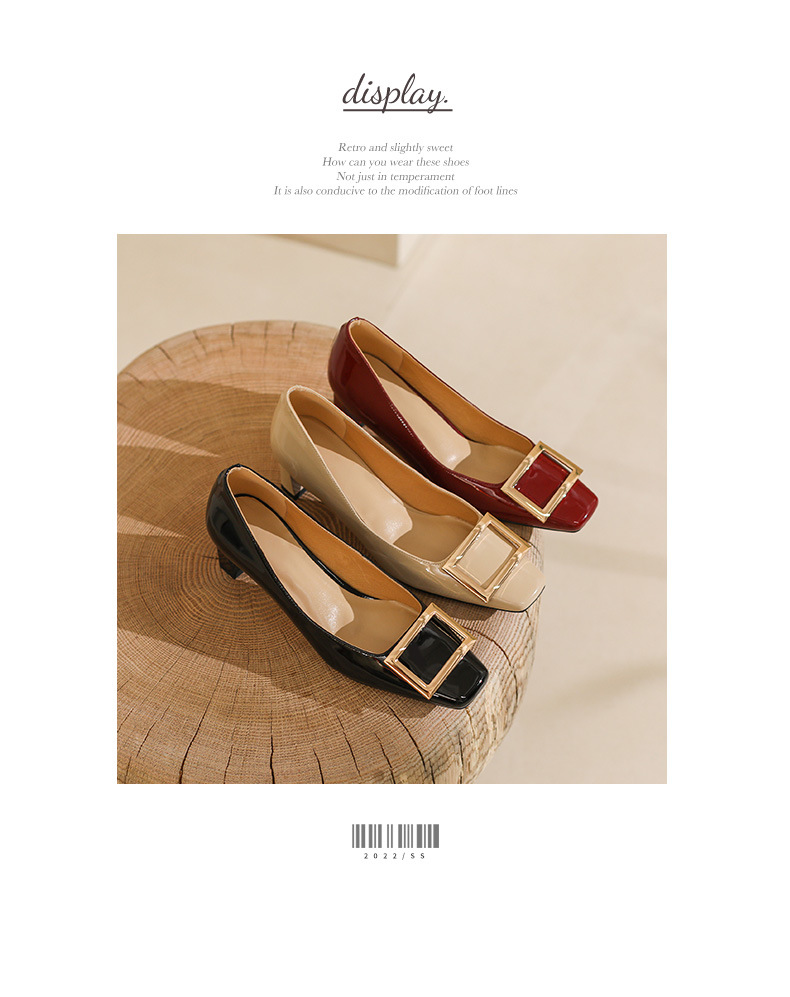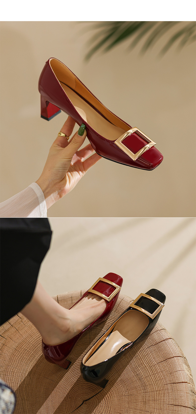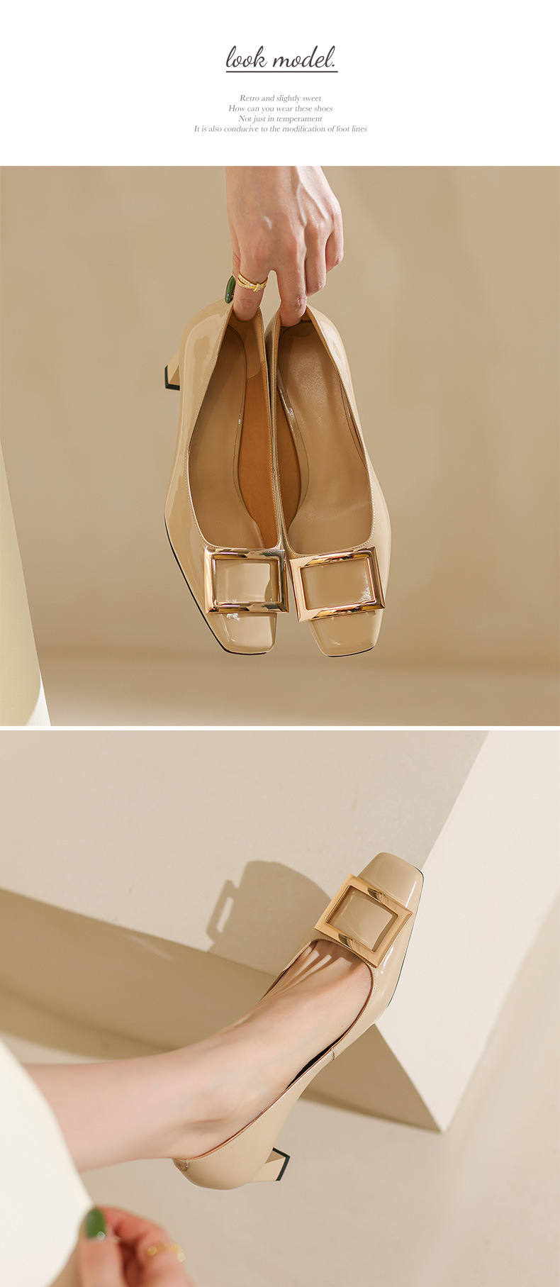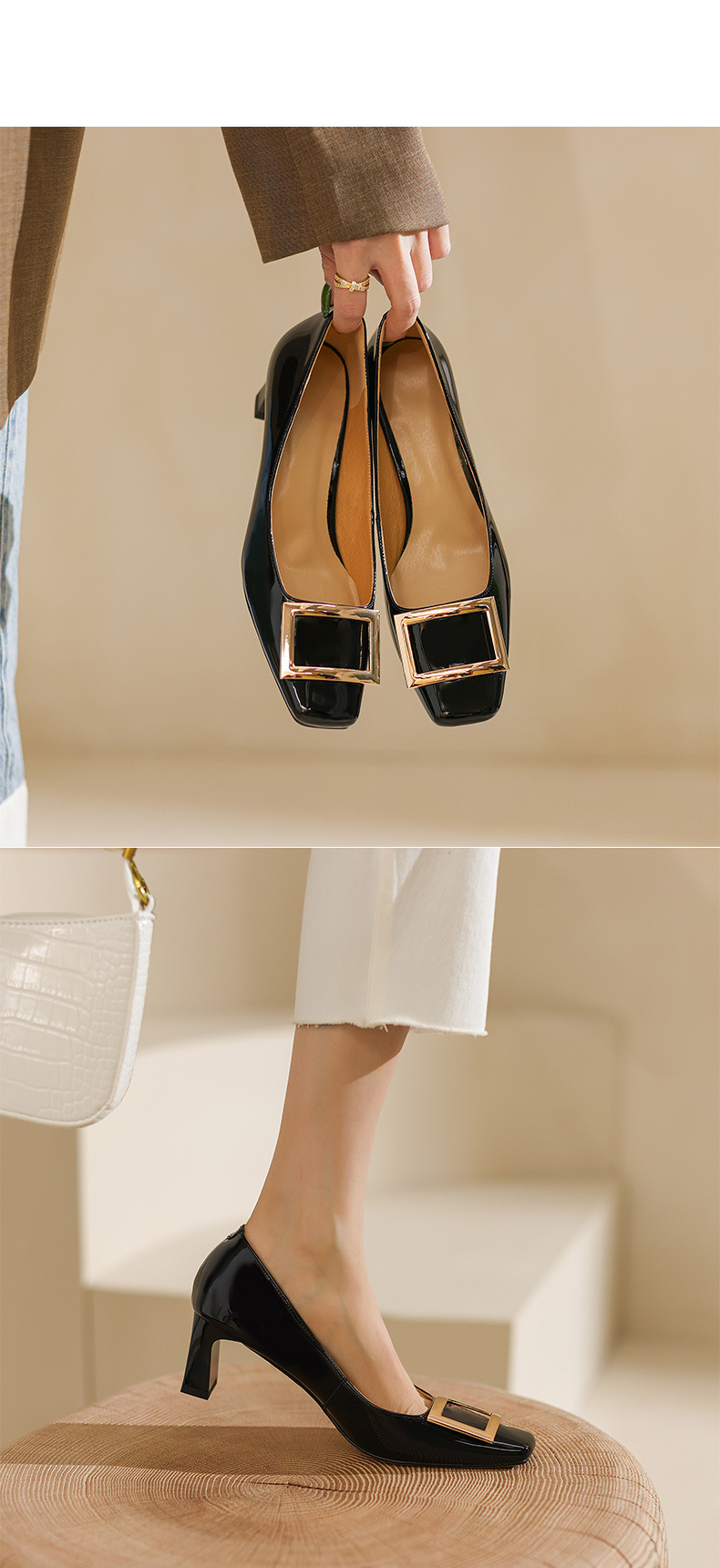 내부 및 외부 전체 가죽 패션 스퀘어 버클 하이힐 2022 봄 뉴 스퀘어 헤드 싱글 레이어 신발 여성용 정품 가죽 작업장 플러스 사이즈 여성 신발스토어 가기
