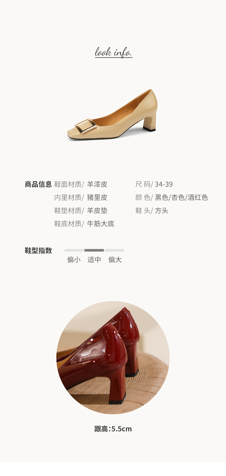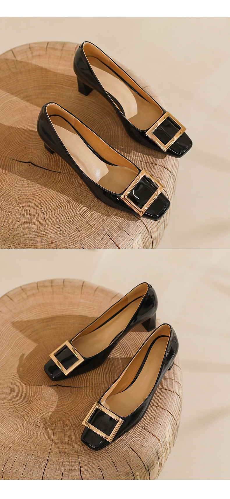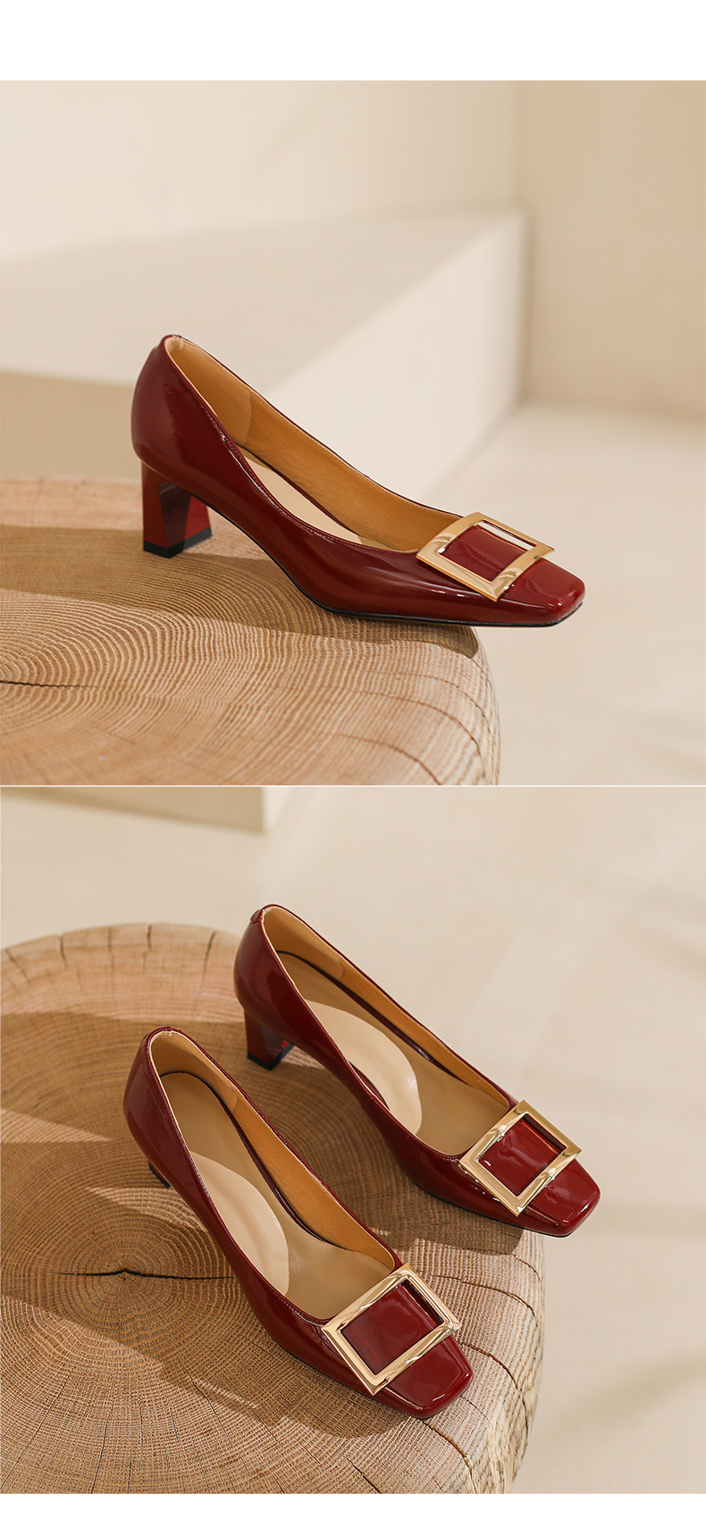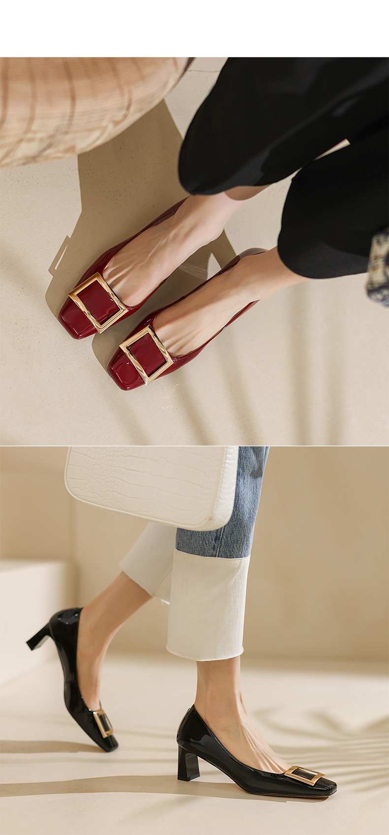 내부 및 외부 전체 가죽 패션 스퀘어 버클 하이힐 2022 봄 뉴 스퀘어 헤드 싱글 레이어 신발 여성용 정품 가죽 작업장 플러스 사이즈 여성 신발스토어 가기