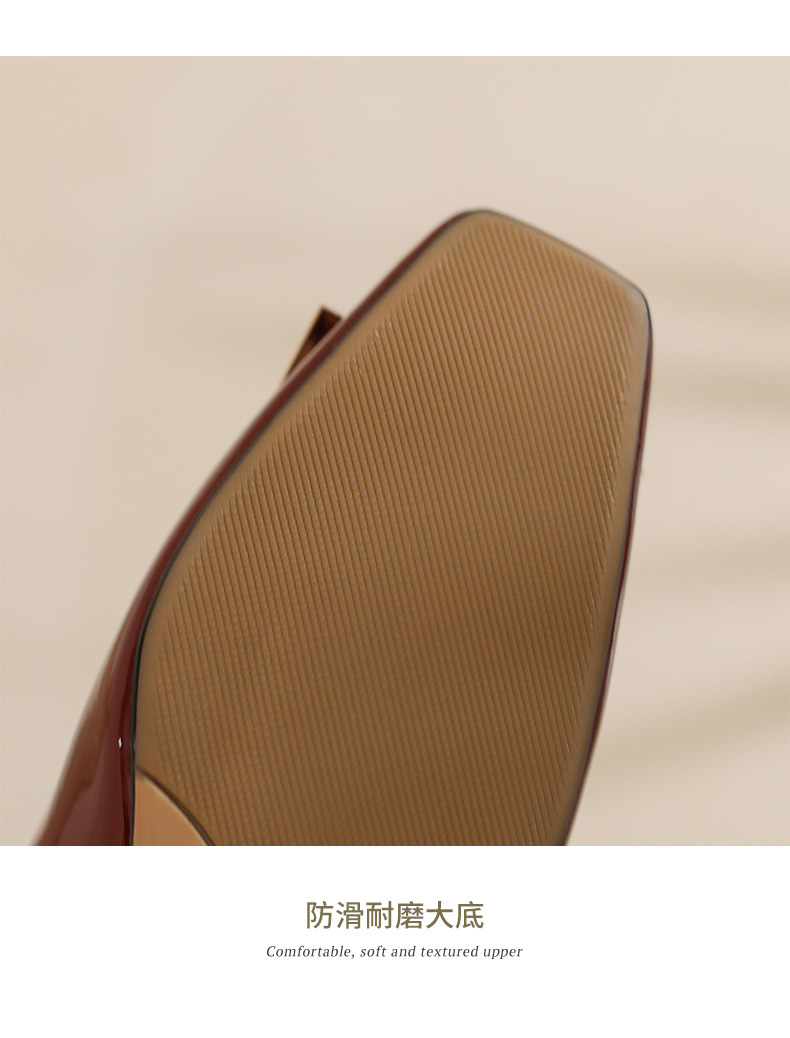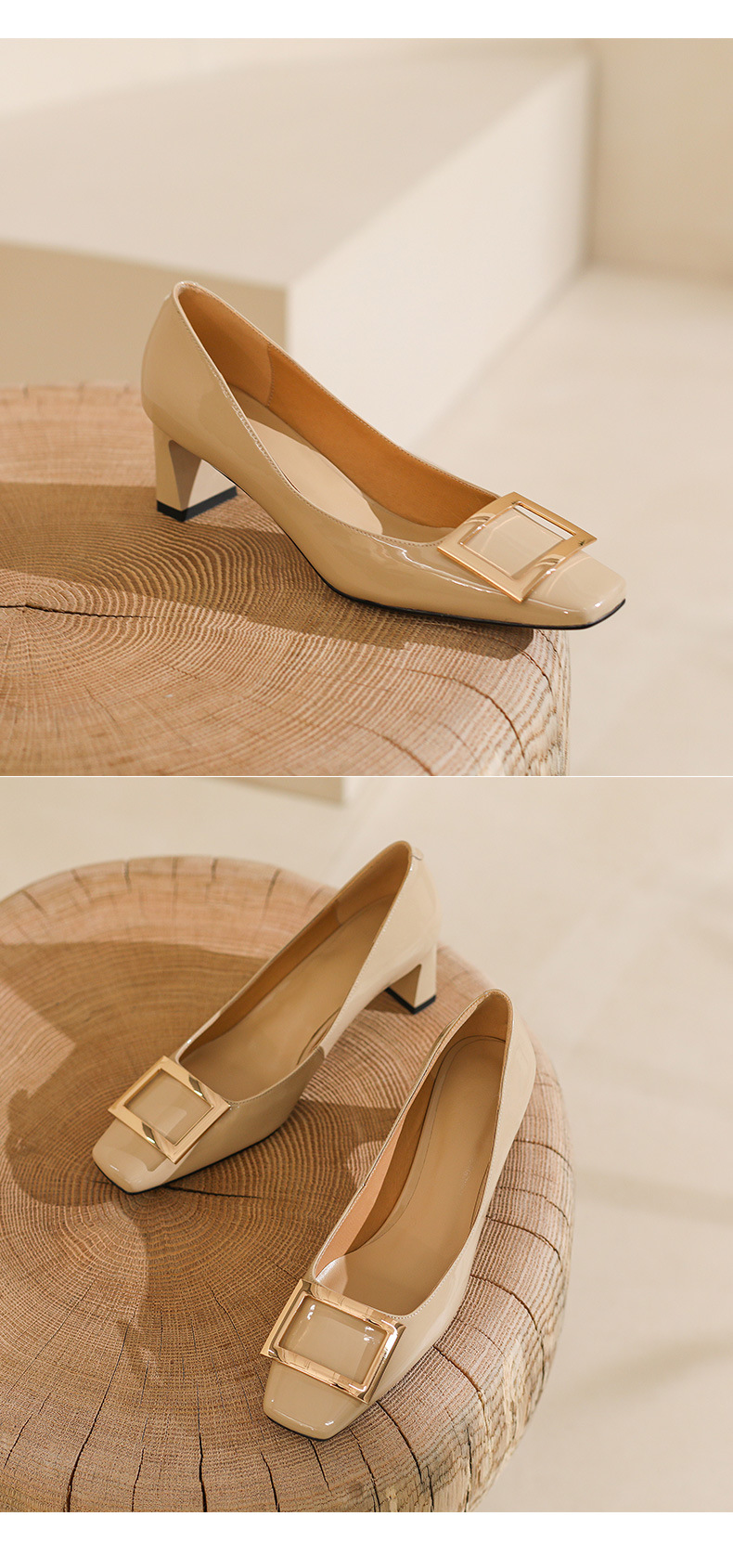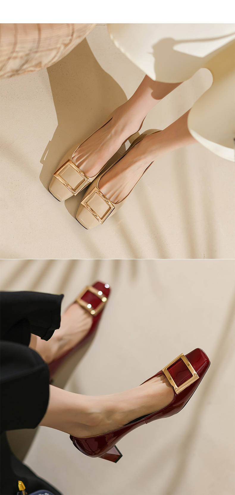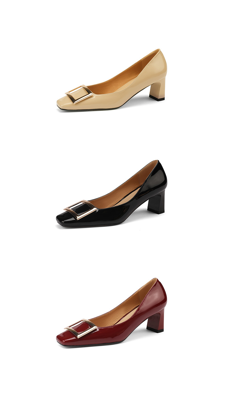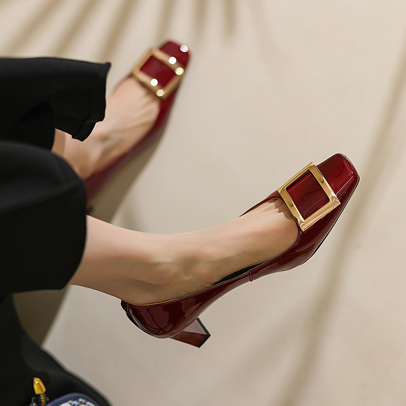 내부 및 외부 전체 가죽 패션 스퀘어 버클 하이힐 2022 봄 뉴 스퀘어 헤드 싱글 레이어 신발 여성용 정품 가죽 작업장 플러스 사이즈 여성 신발스토어 가기