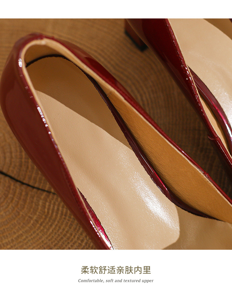 내부 및 외부 전체 가죽 패션 스퀘어 버클 하이힐 2022 봄 뉴 스퀘어 헤드 싱글 레이어 신발 여성용 정품 가죽 작업장 플러스 사이즈 여성 신발