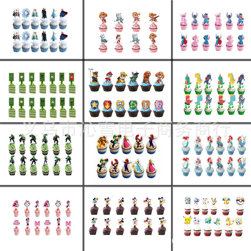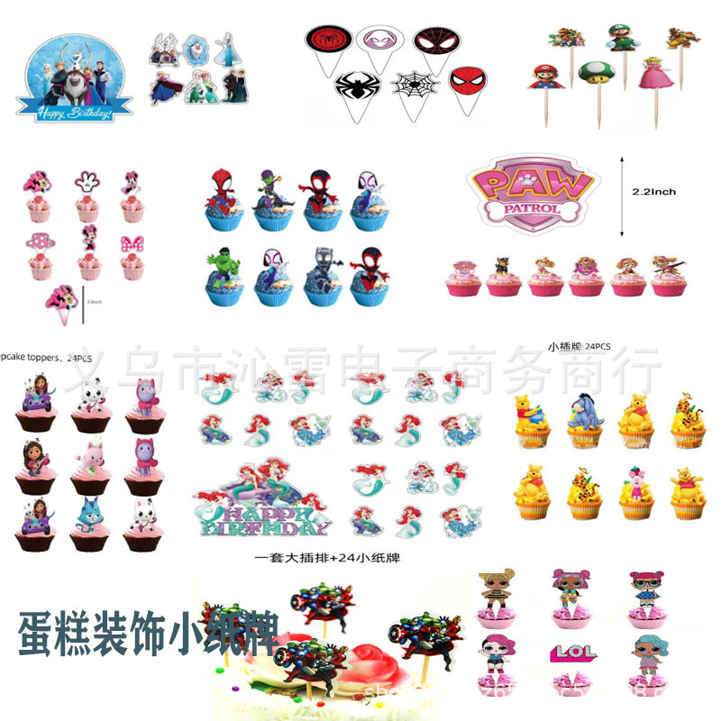 만화 캐릭터 케이크 장식 작은 카드 스몰 사이즈 삽입 깃발 삽입 생일 파티 만화 테마 장식 작은 카드스토어 가기