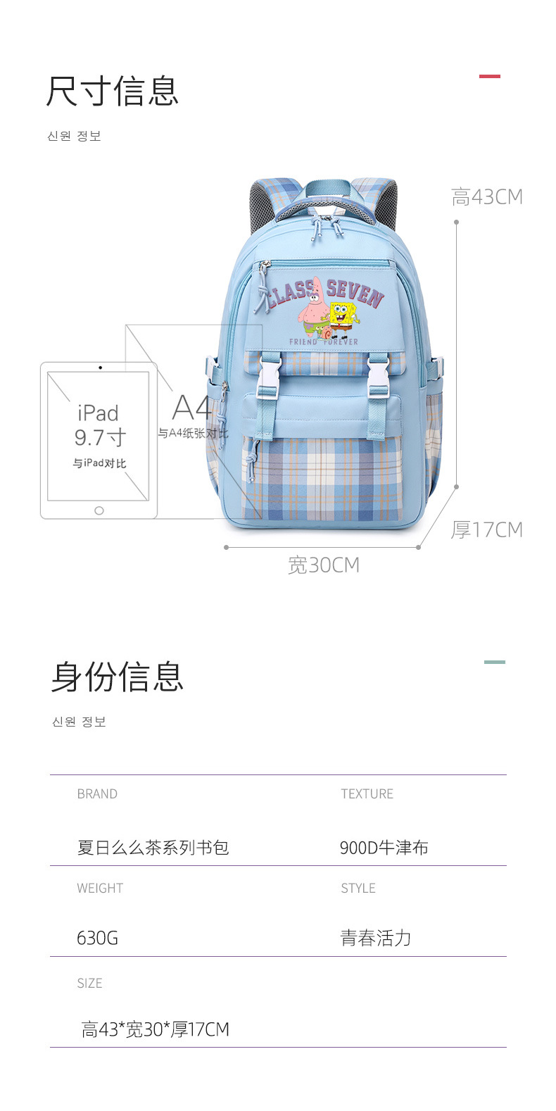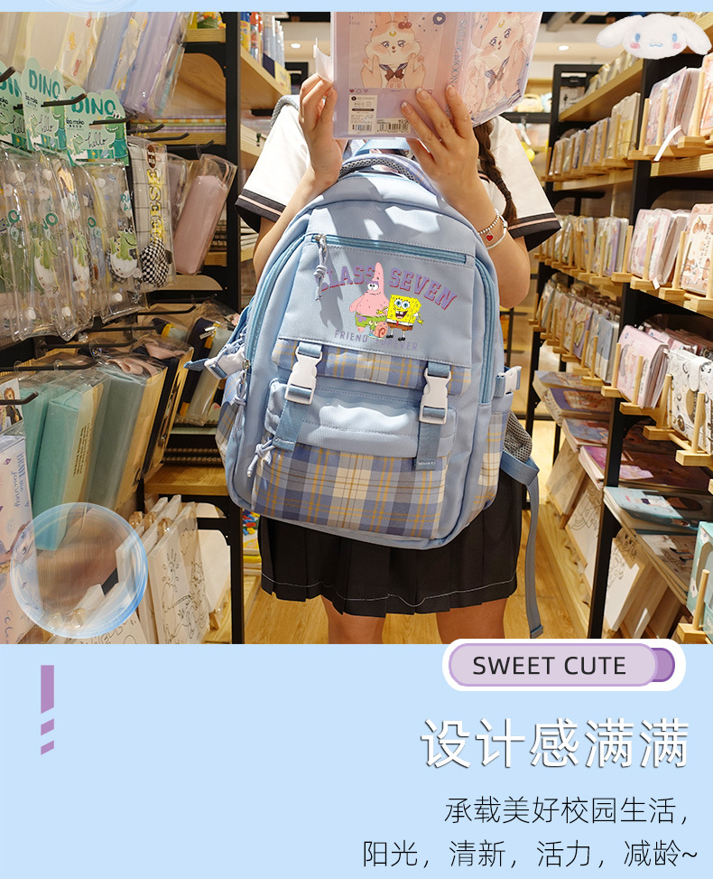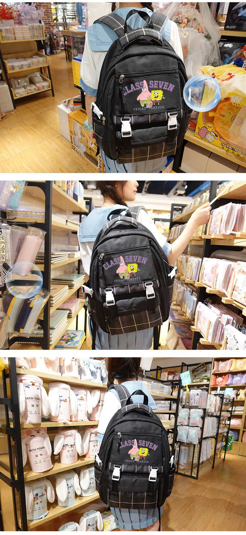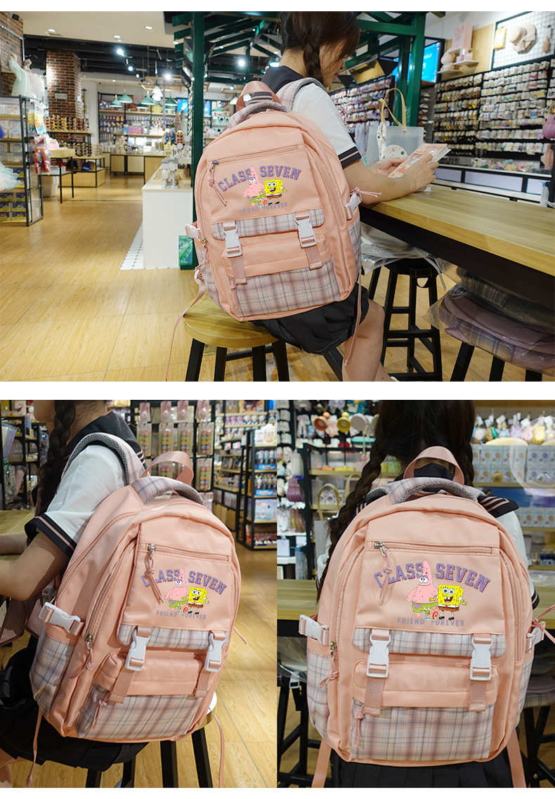 남성과 여성을위한 스폰지 밥 스퀘어 팬츠 초등학교 배낭 3 ~ 6 학년 대용량 책가방 중학교 일본어 in