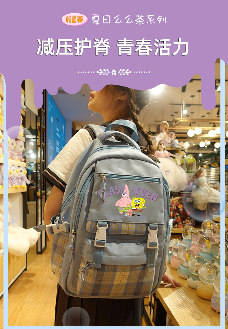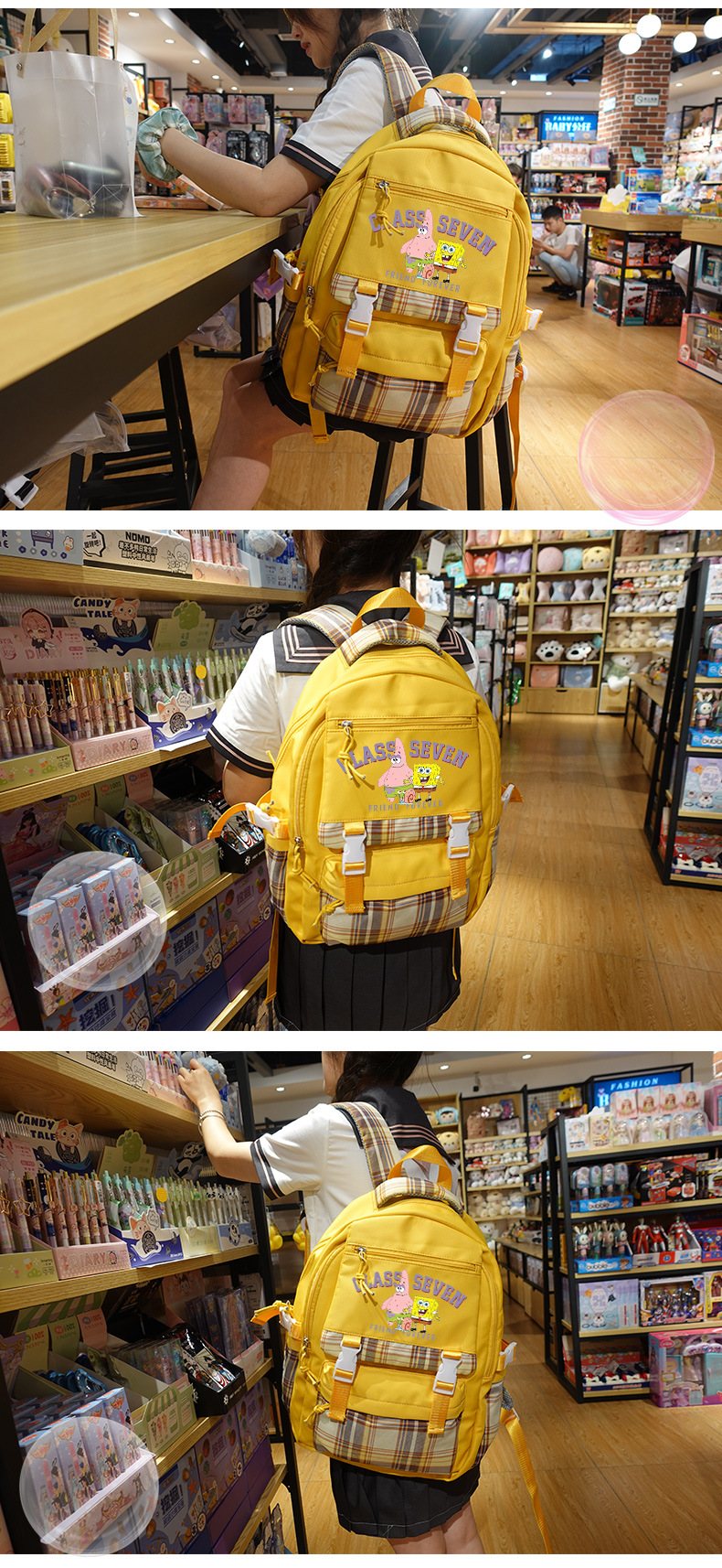 남성과 여성을위한 스폰지 밥 스퀘어 팬츠 초등학교 배낭 3 ~ 6 학년 대용량 책가방 중학교 일본어 in스토어 가기