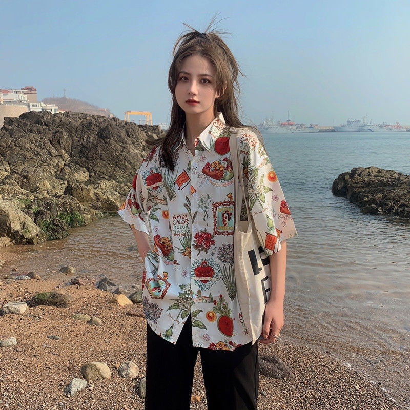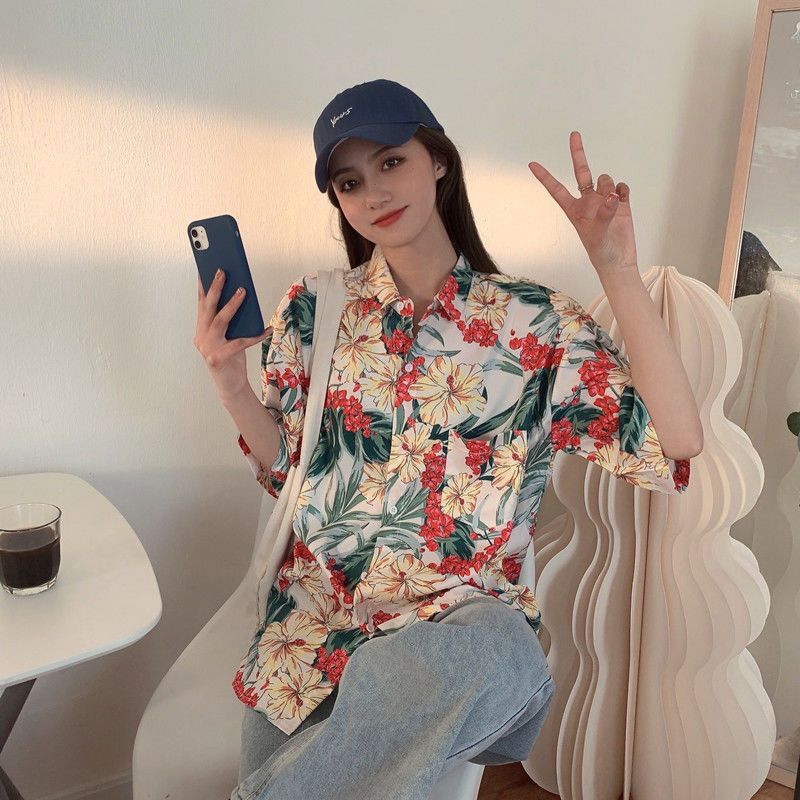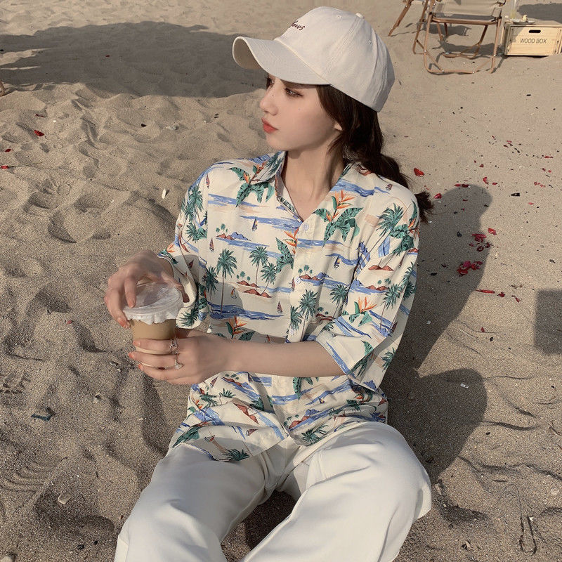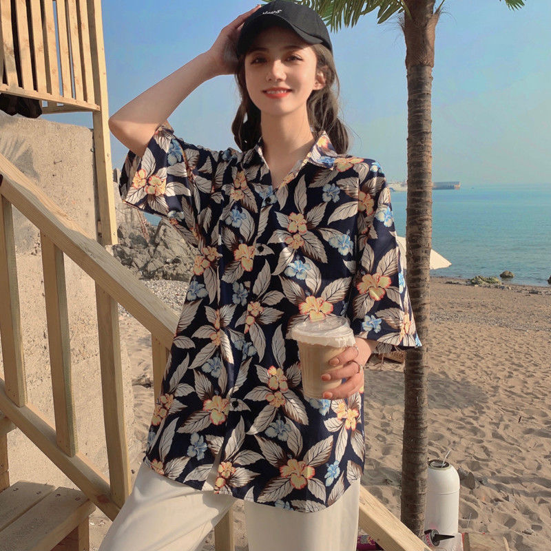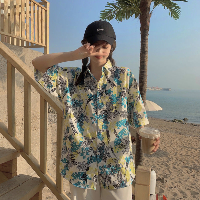 Sanya 여행 휴가 반팔 꽃무늬 셔츠 여성용 하와이안 슈퍼 페어리 해변 해변 셔츠 홍콩 스타일 의류스토어 가기