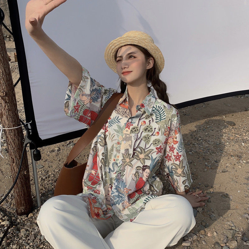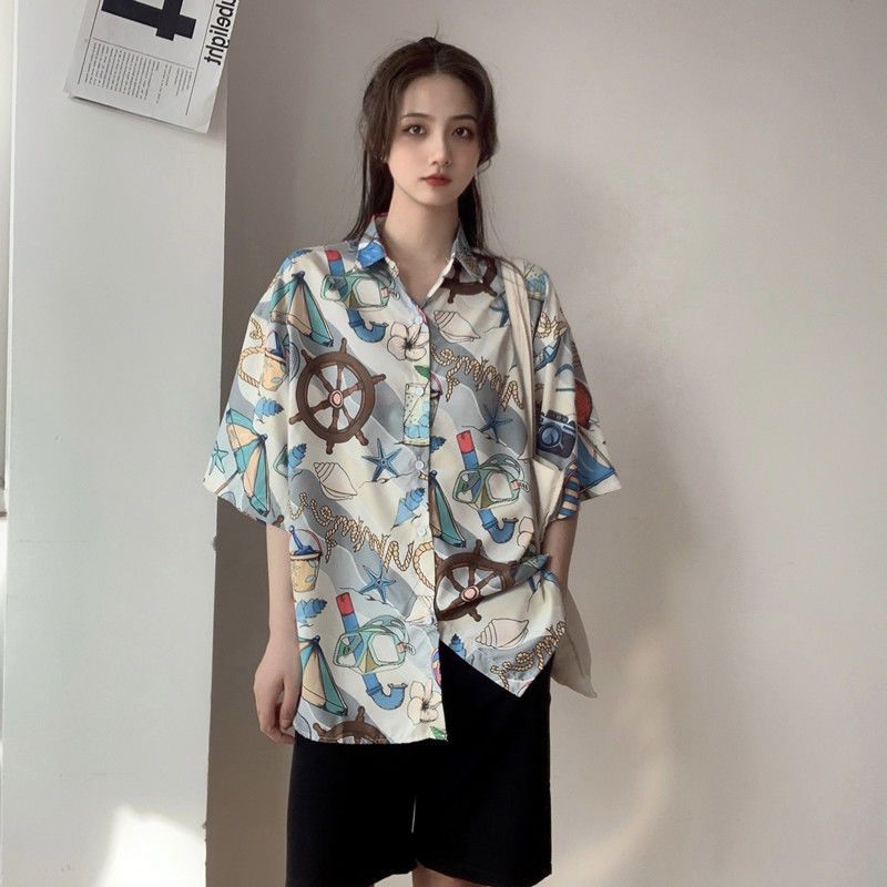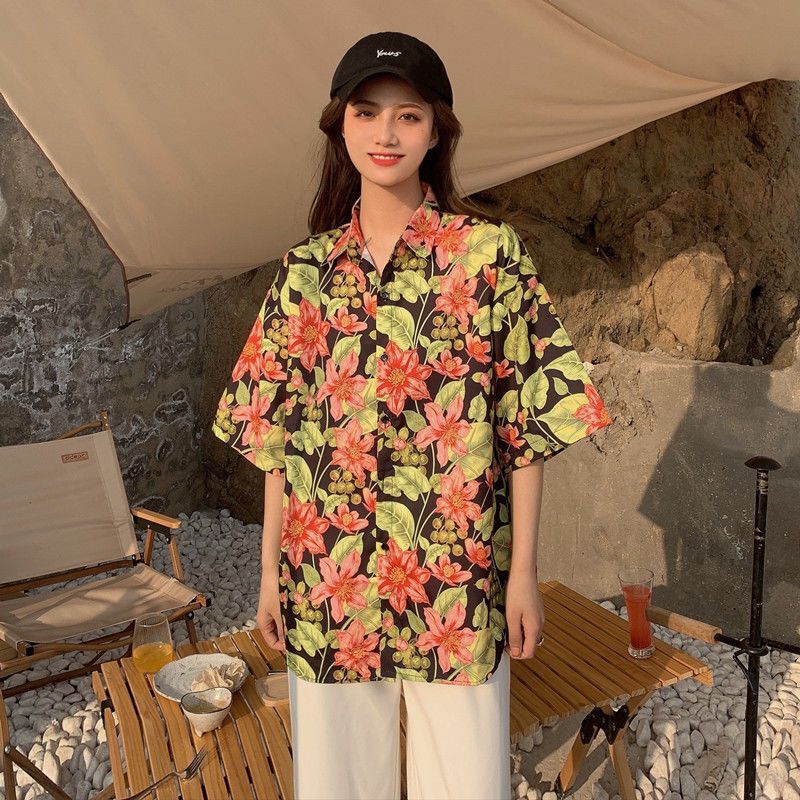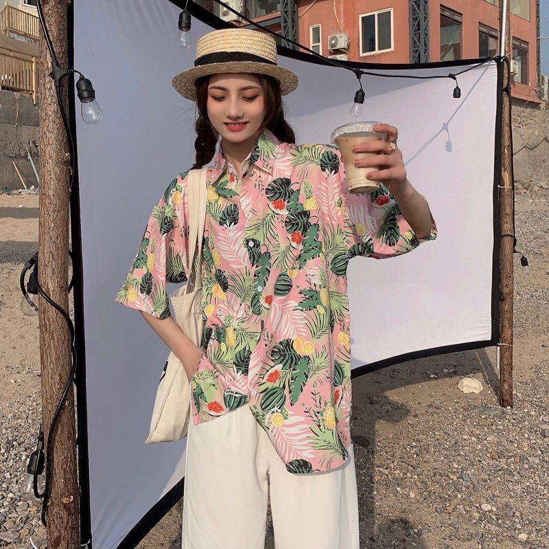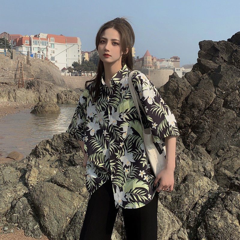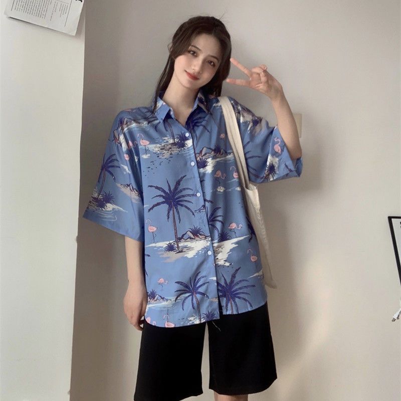 Sanya 여행 휴가 반팔 꽃무늬 셔츠 여성용 하와이안 슈퍼 페어리 해변 해변 셔츠 홍콩 스타일 의류스토어 가기