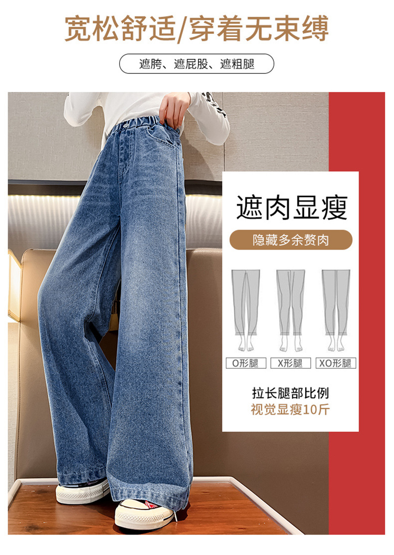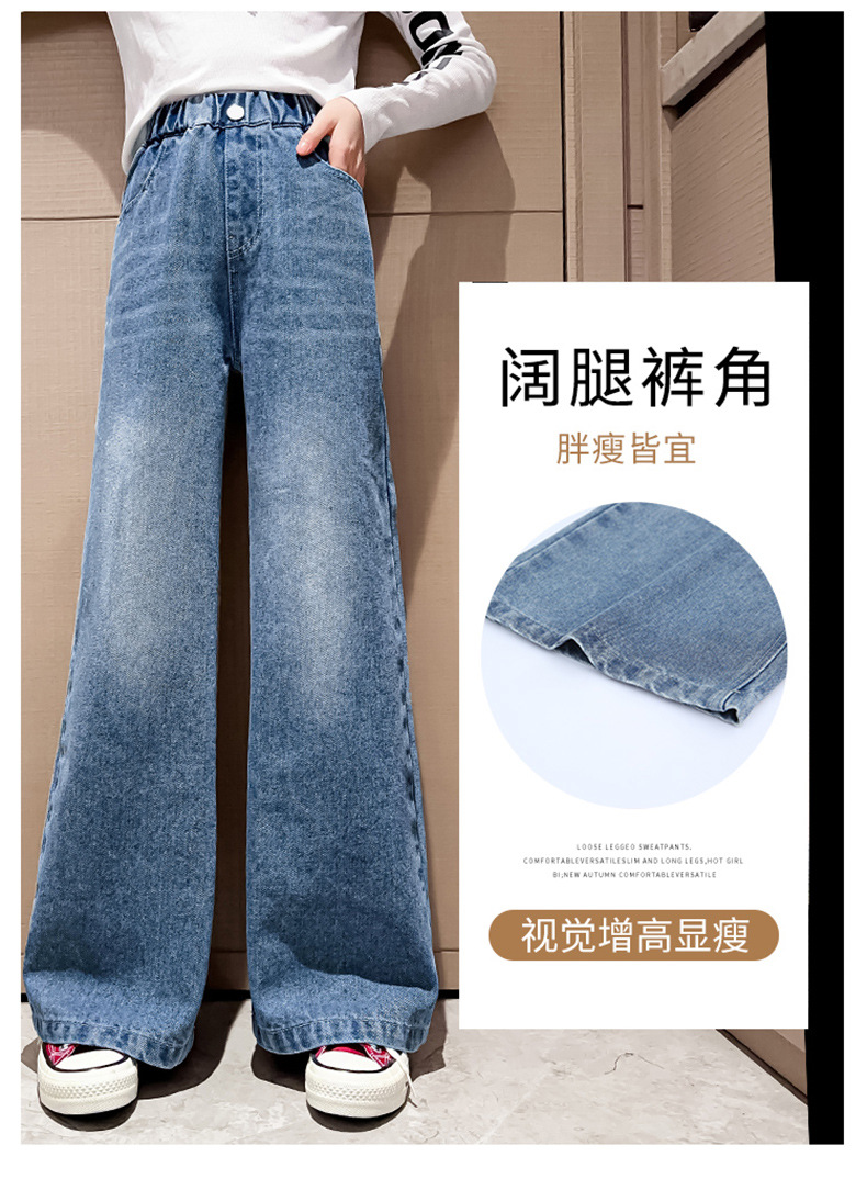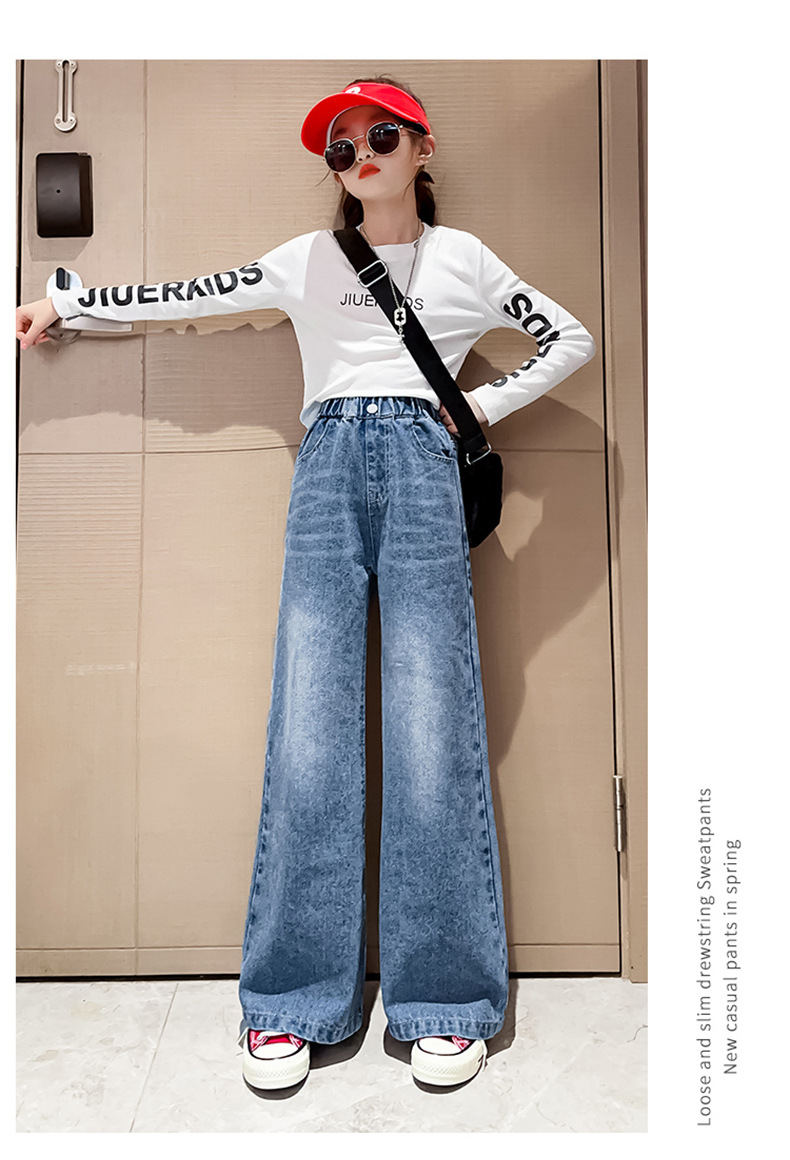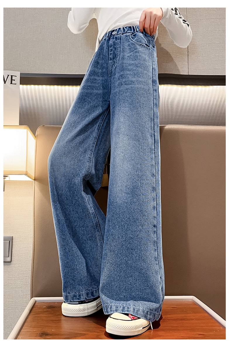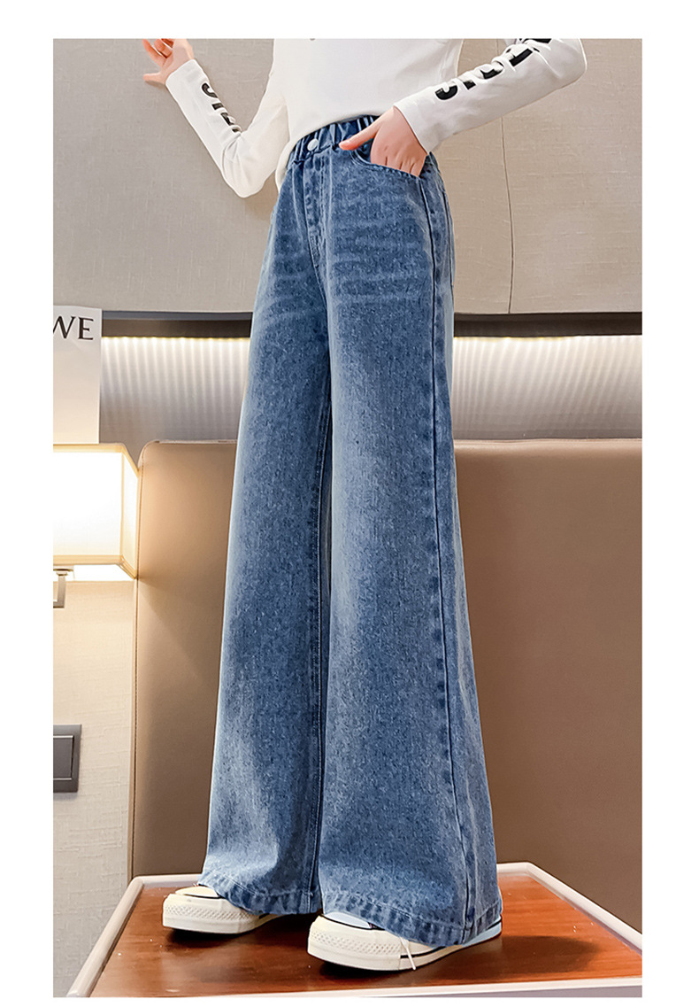 대외 무역 한국식 봄 가을 2023 소녀 큰 소년 어린 소녀 세련된 빅 벨 입 데님 넓은 다리 바지