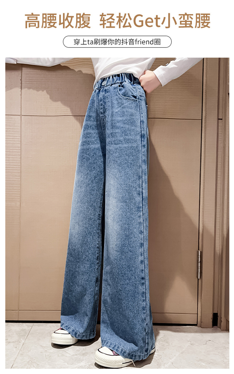 대외 무역 한국식 봄 가을 2023 소녀 큰 소년 어린 소녀 세련된 빅 벨 입 데님 넓은 다리 바지스토어 가기