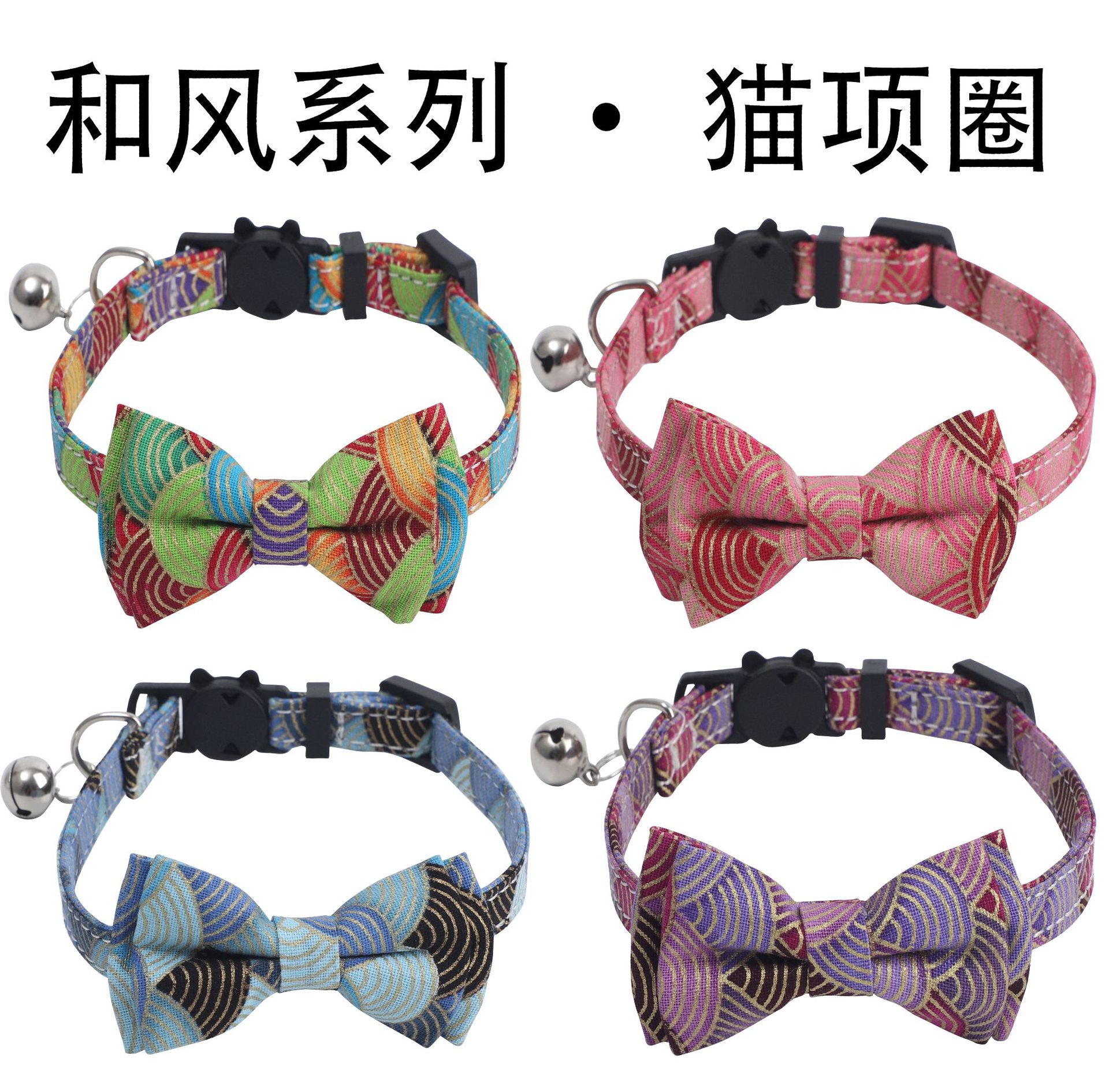 신제품 일본식 목걸이 강아지 고양이용 벨 장식 리본 조절 가능한 목걸이 애완동물 액세서리스토어 가기