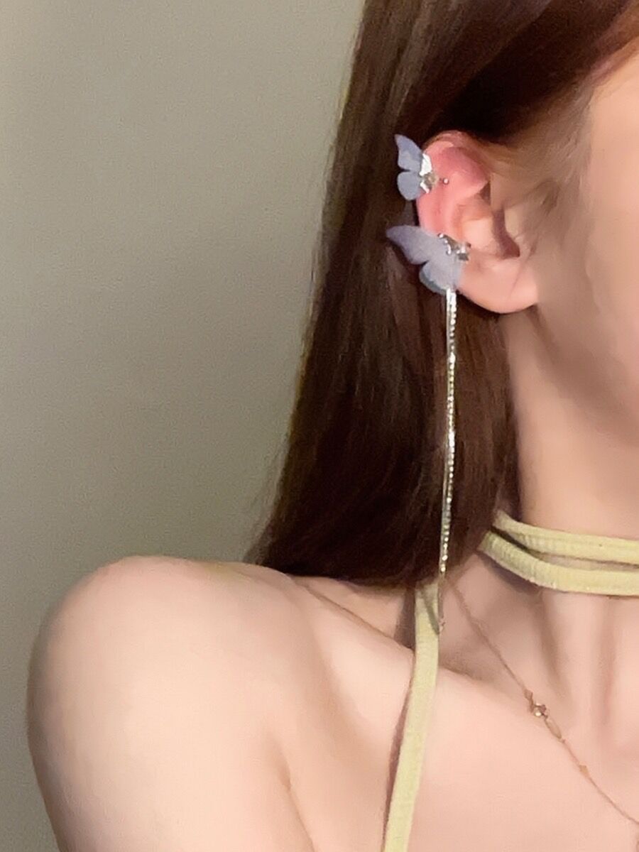슈퍼 페어리 다이아몬드 박힌 보라색 나비 긴 술 귀 클립 틈새 디자인 귀 클립 귀 뼈 클립 성격 기질 귀걸이스토어 가기