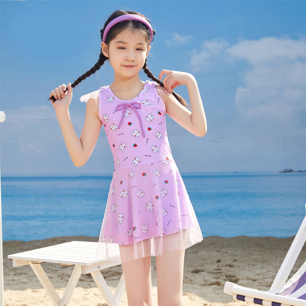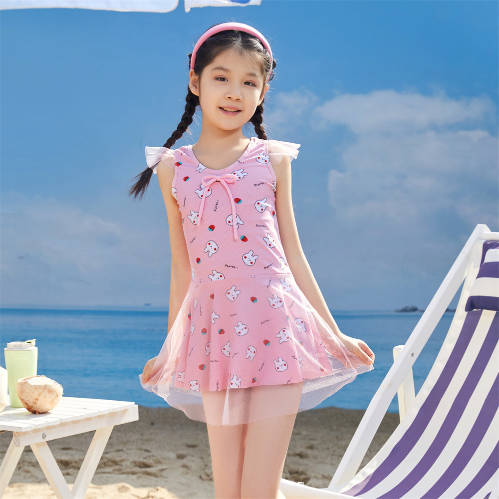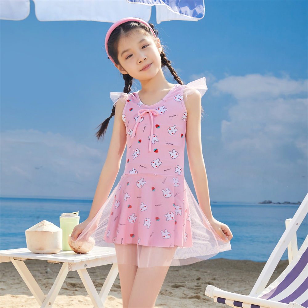 새로운 어린이 수영복 소녀의 중소 규모 아기 공주 원피스 수영복 귀여운 레이스 원피스 한국 만화 수영복