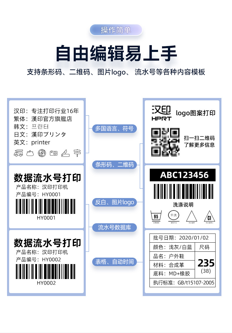 한인 HT300/330 바코드 접착식 의류 태그 물 세척 마크 증명서 열전사 프린터