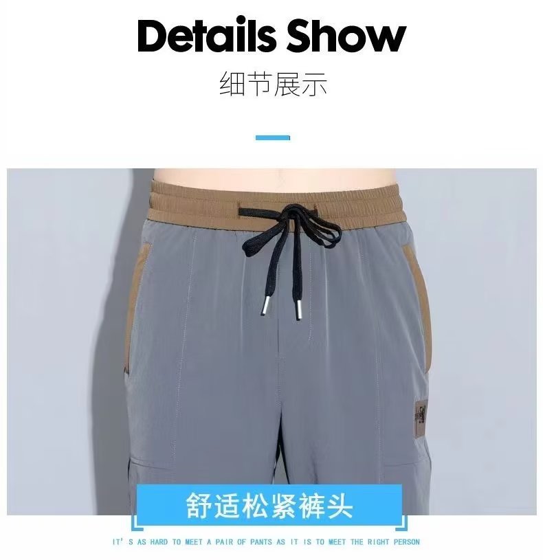 TikTok 크롭 캐주얼 바지 남성용 루즈핏 허리 반바지 트렌디 브랜드 자수 중국 아이스 실크 속건 스포츠 바지스토어 가기