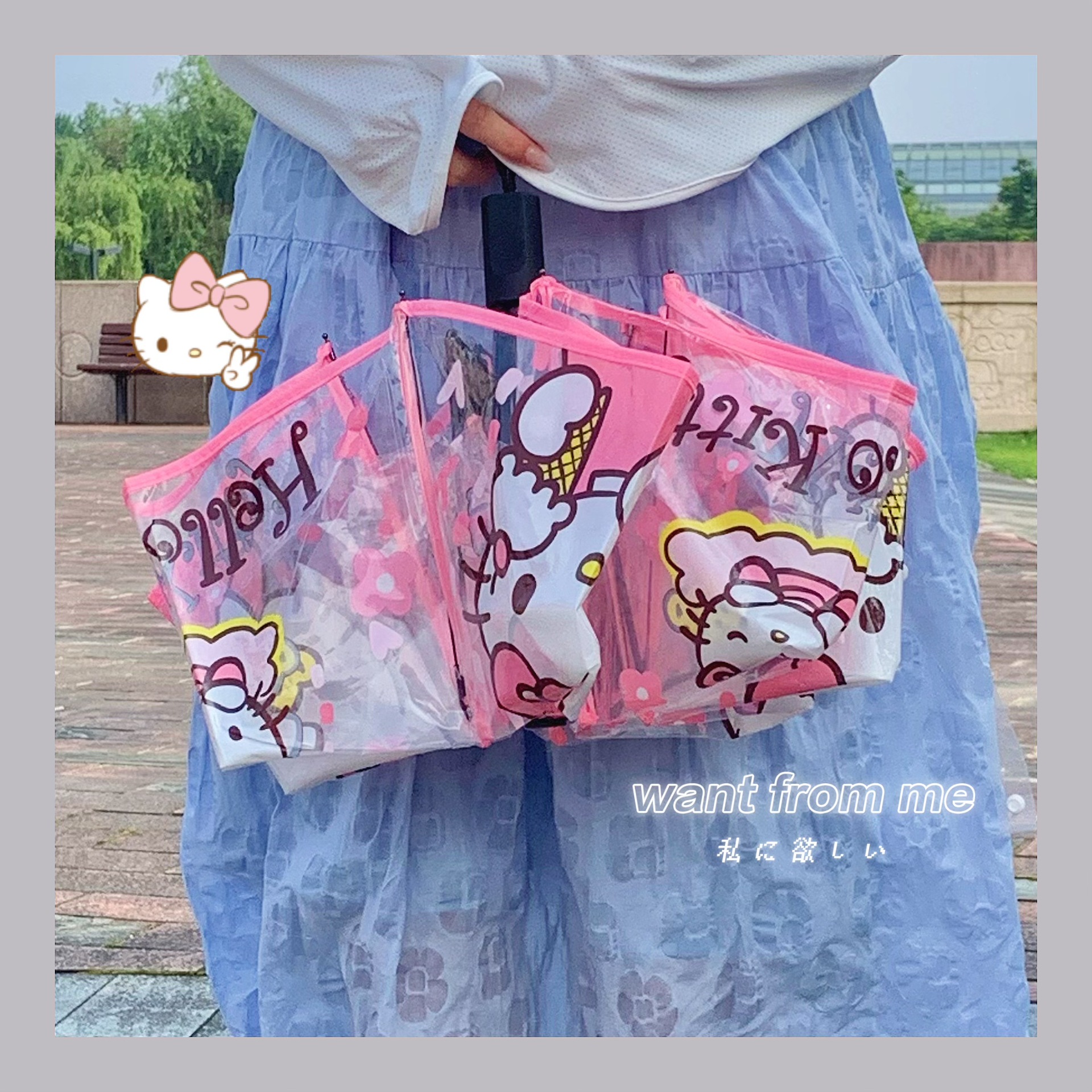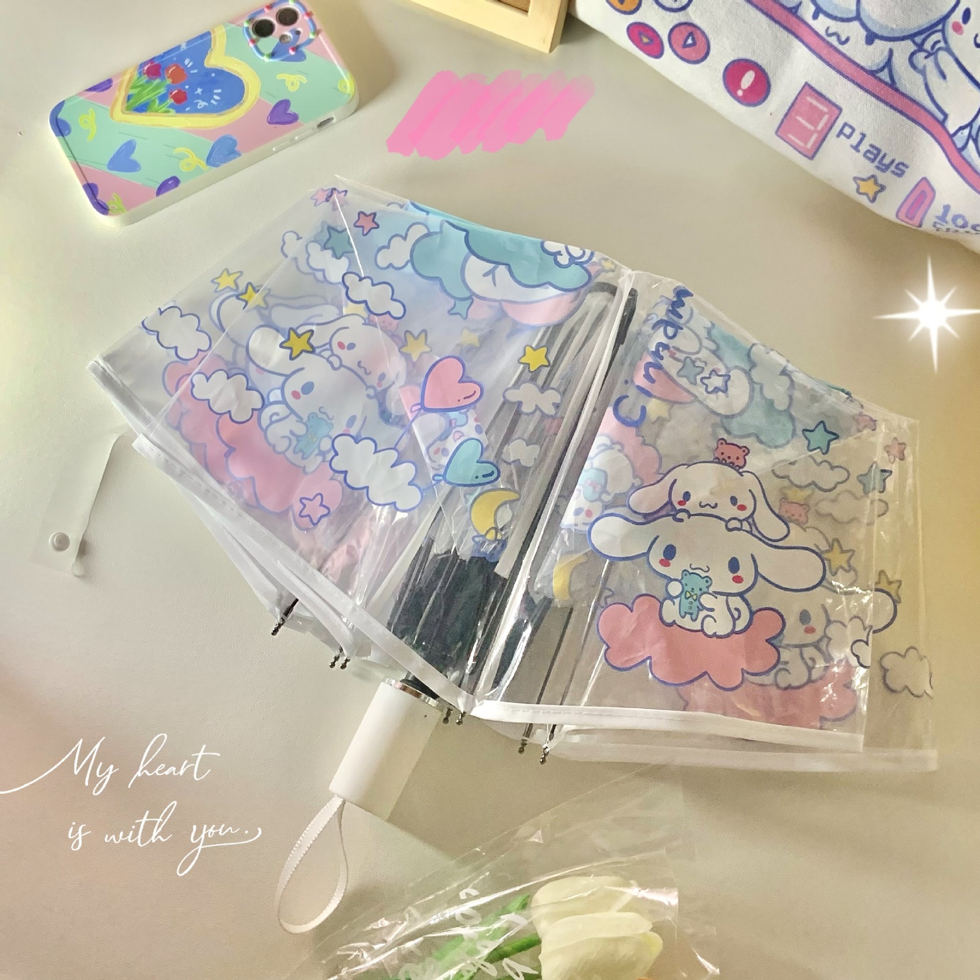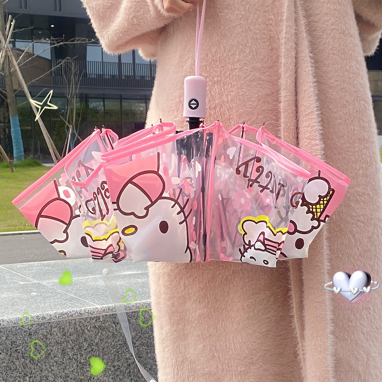 어린이용 자동 접이식 우산, 학생용 귀여운 투명 인기 만화 캐릭터 70% off 신선한 디자인 긴 손잡이 두꺼운 우산스토어 가기