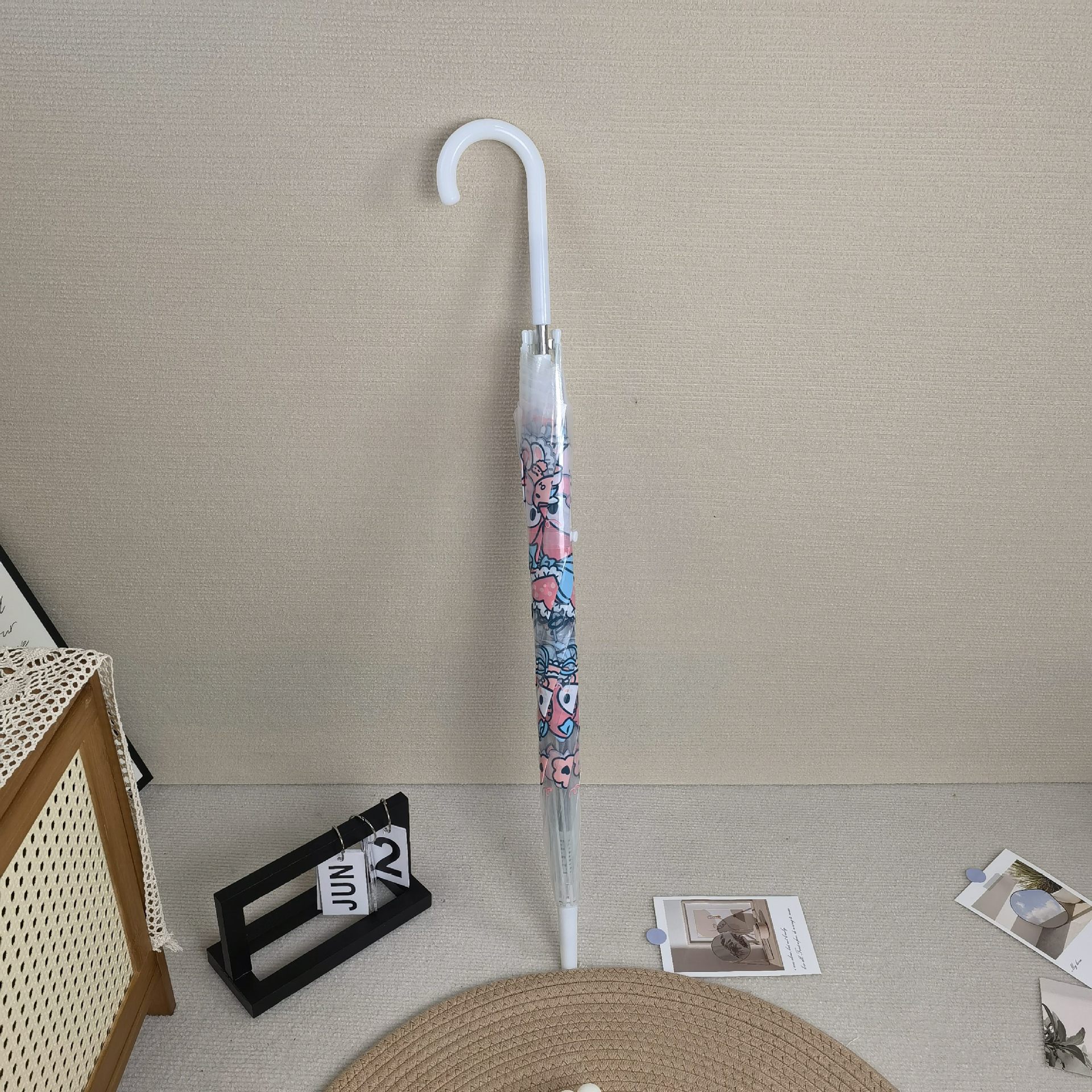 어린이용 자동 접이식 우산, 학생용 귀여운 투명 인기 만화 캐릭터 70% off 신선한 디자인 긴 손잡이 두꺼운 우산