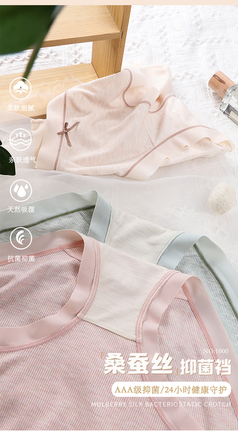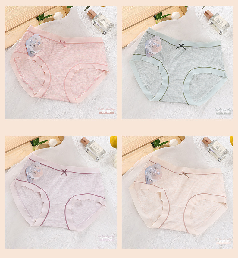 일본식 리본 누드 컬러 색상의 면사 트레이스리스 여성용 속옷 항균 중간 허리 편안한 무봉제 엉덩이를 감싸는 삼각 팬티스토어 가기
