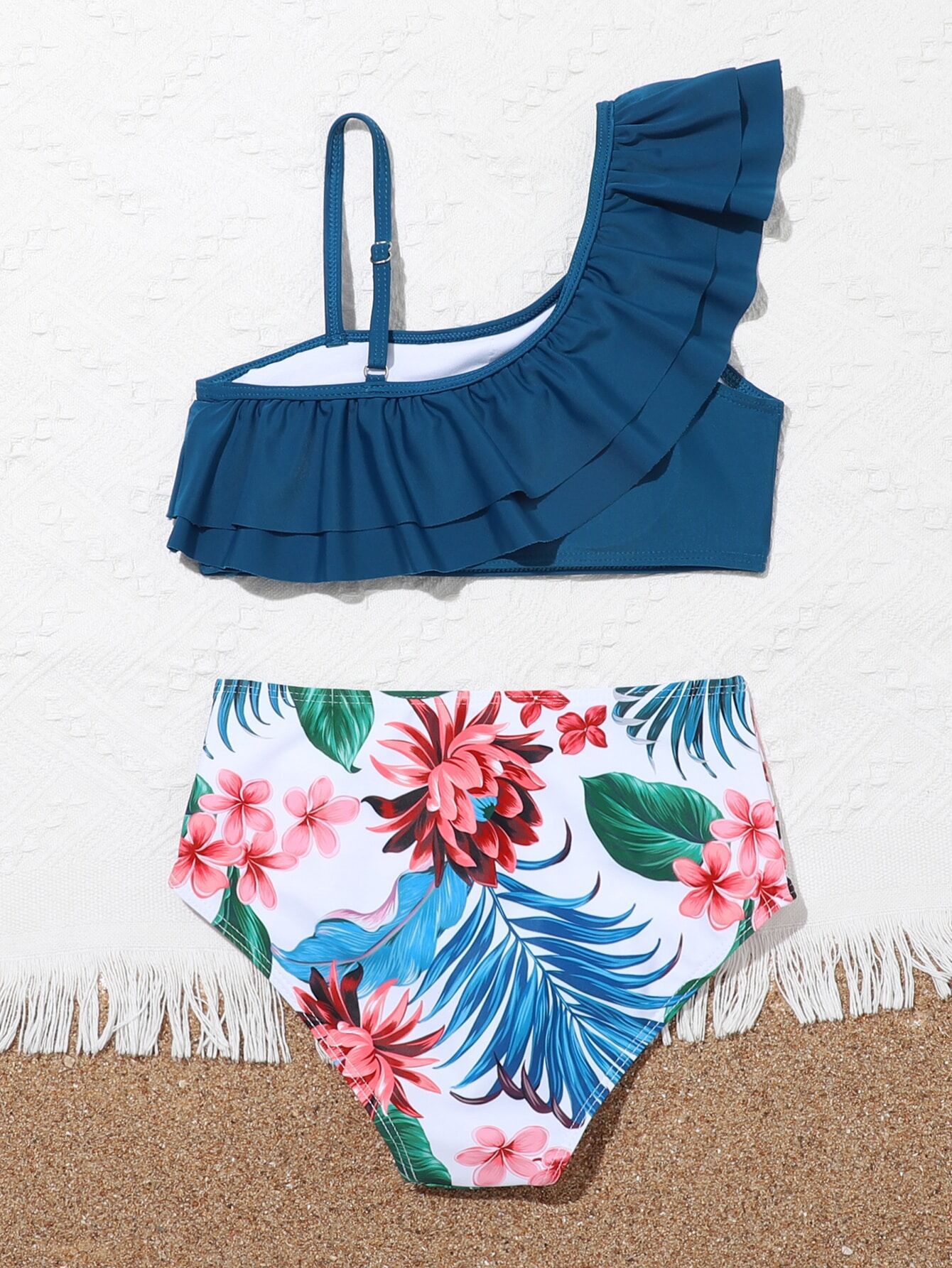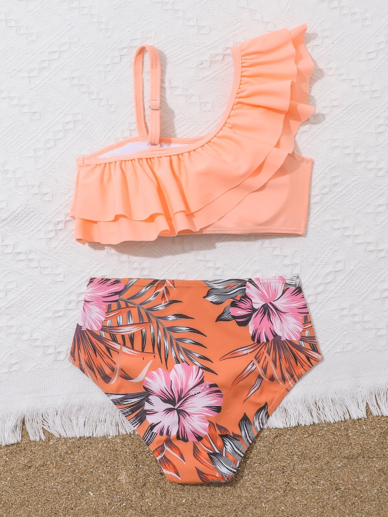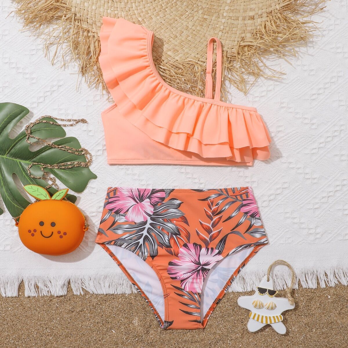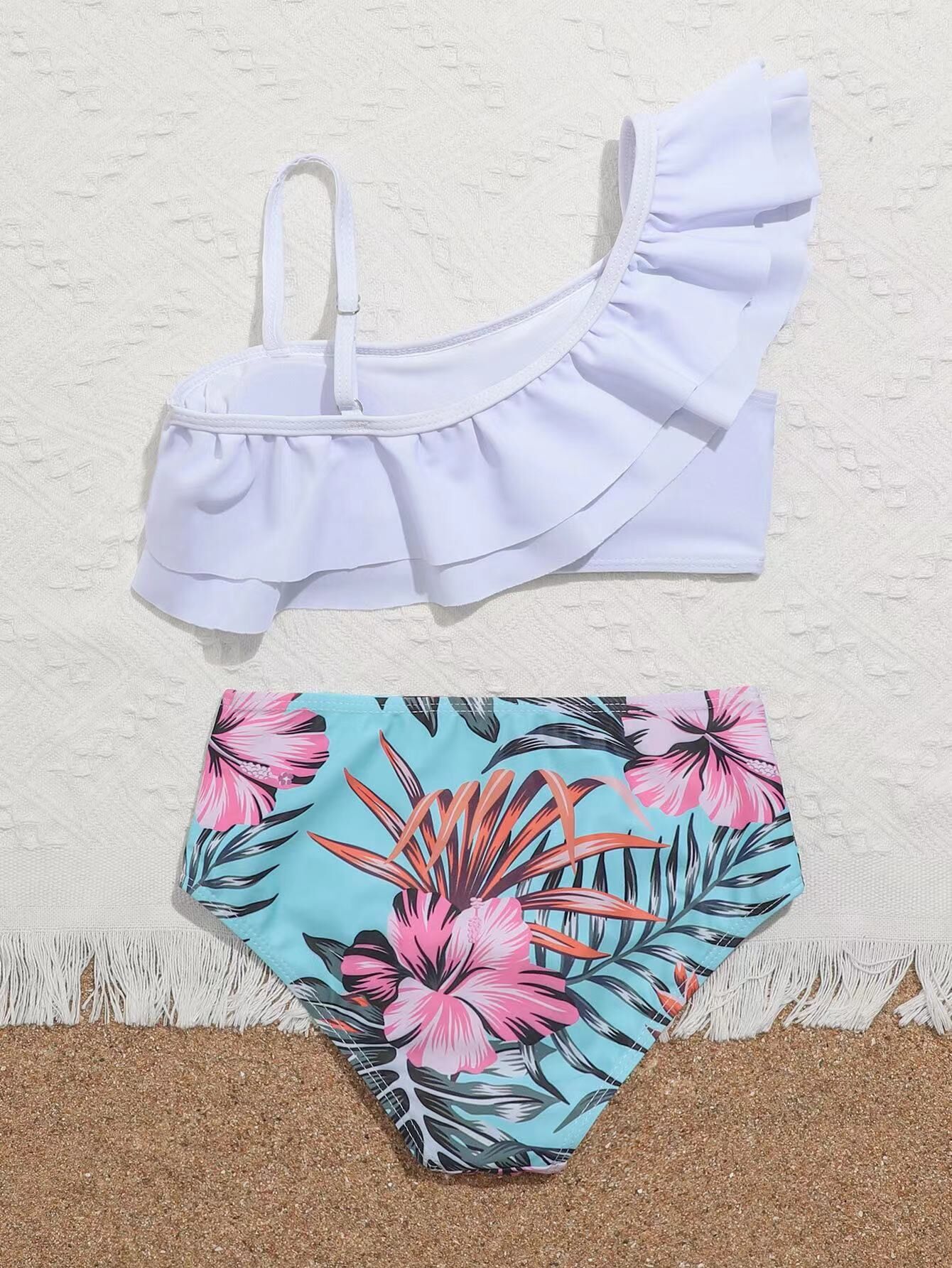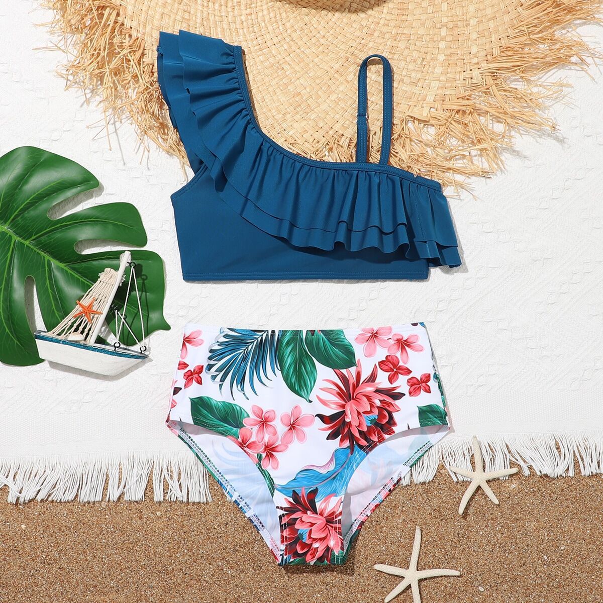 2023 새로운 아마존 유럽과 미국 섹시한 하이 웨이스트 큰 어린이 분할 비키니 소녀 수영복 제조 업체 도매