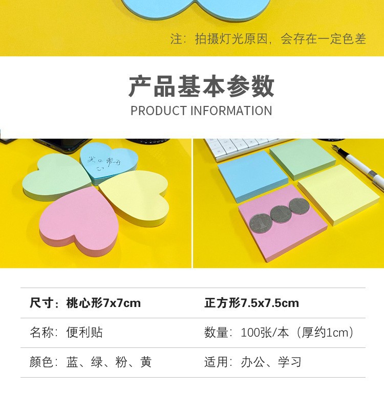 사랑 컬러 포스트잇 노트 사무실 노트 종이 n 번 사각형 하트 모양의 창조적 인 간단한 스티커 끈적스토어 가기