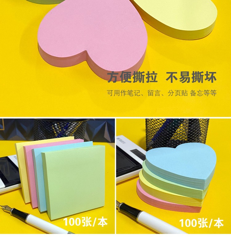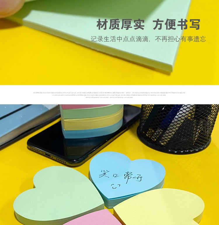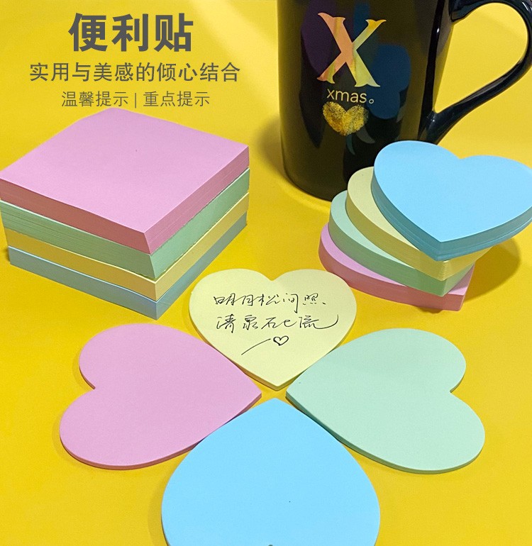 사랑 컬러 포스트잇 노트 사무실 노트 종이 n 번 사각형 하트 모양의 창조적 인 간단한 스티커 끈적