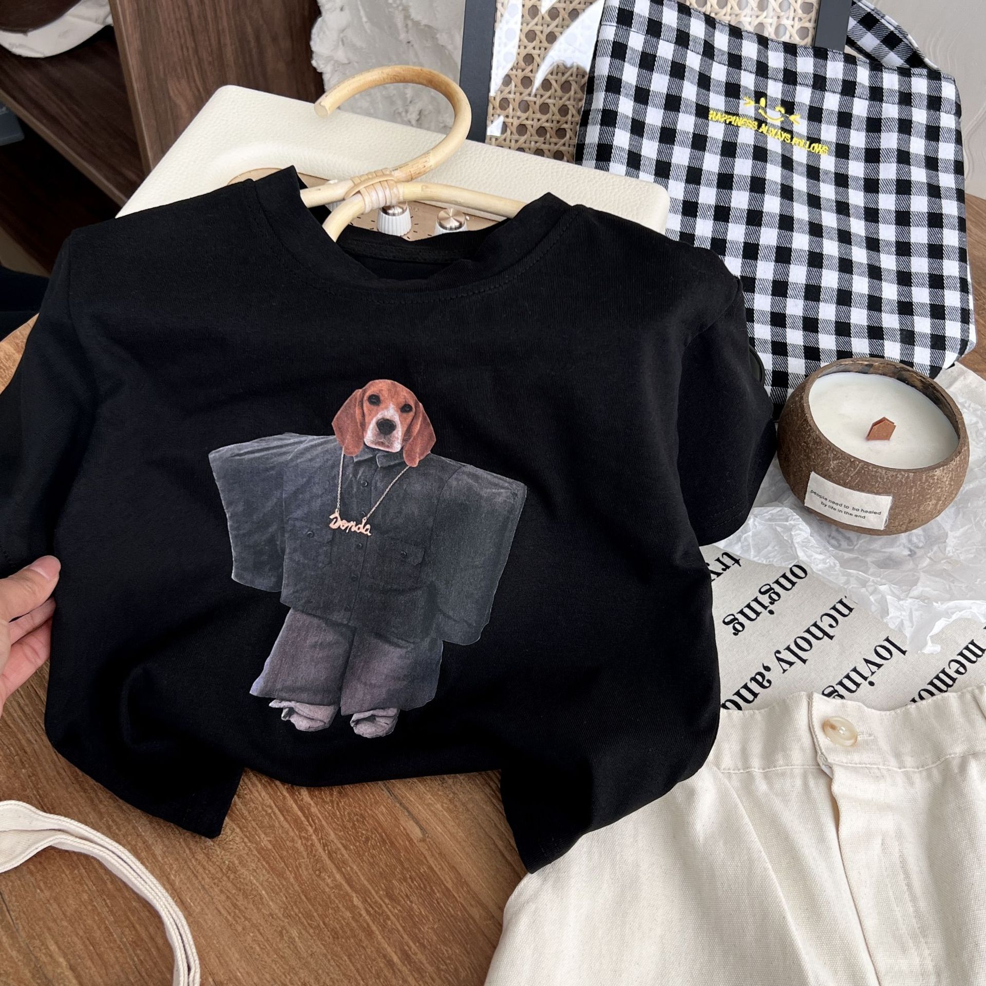 Miaoxuan 아동복 어린이 반팔 2023 새로운 스타일 여름 원피스 소녀 순면 티셔츠 캐주얼 만화 여름 얇은 반팔