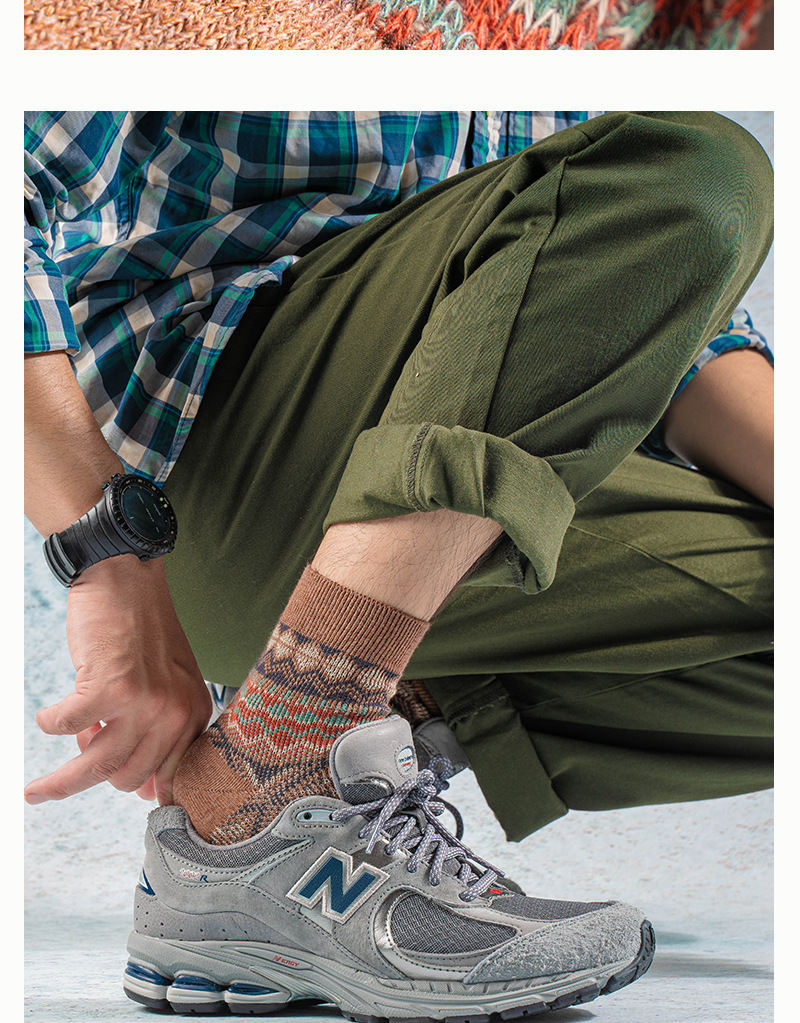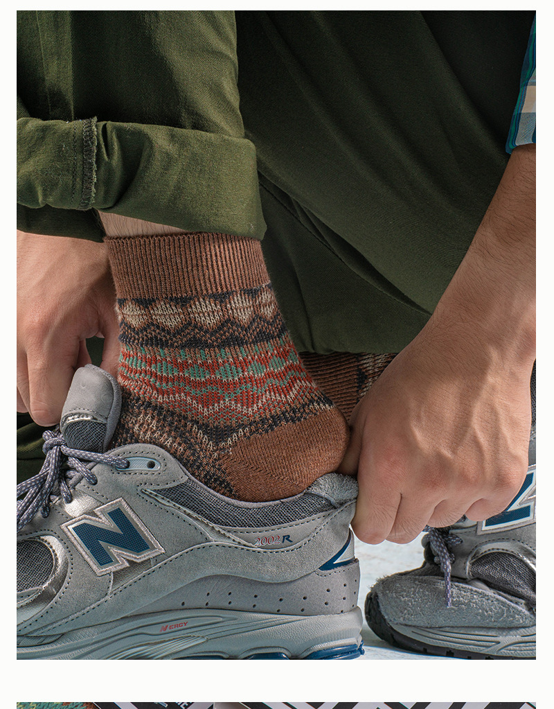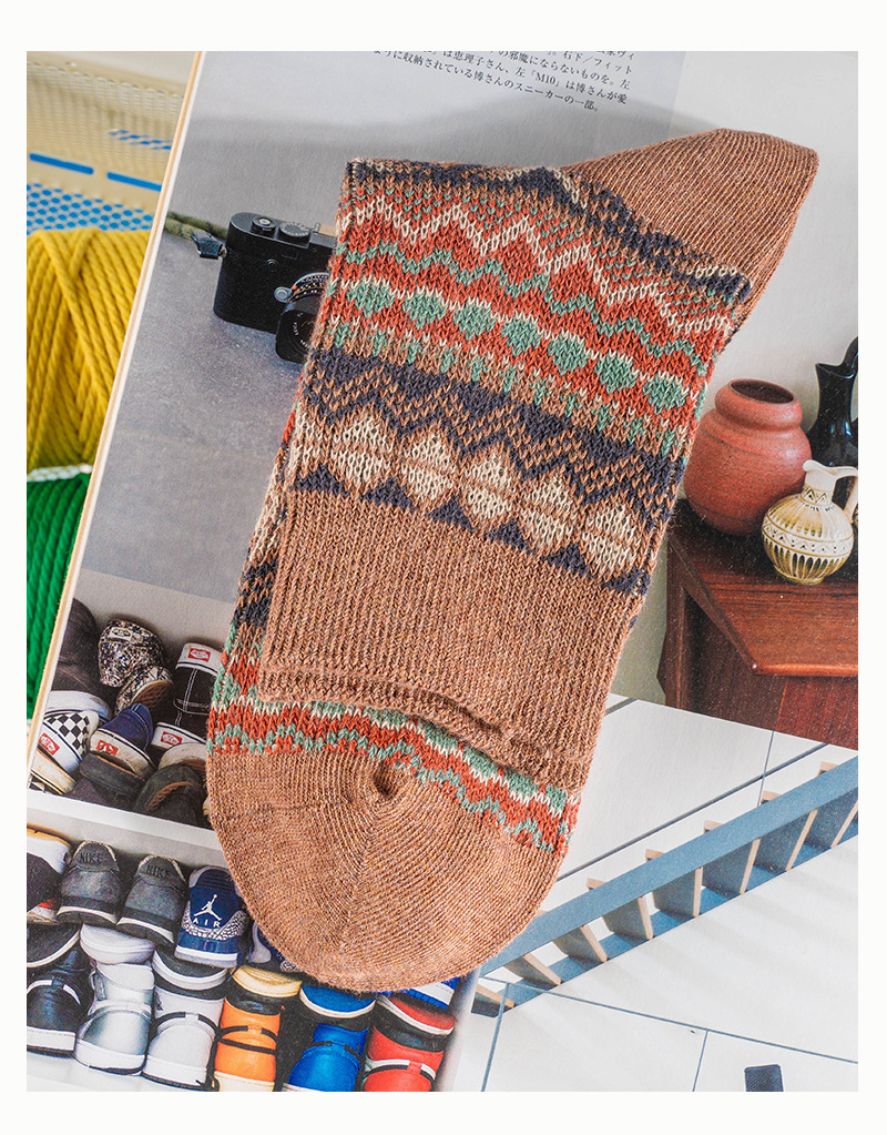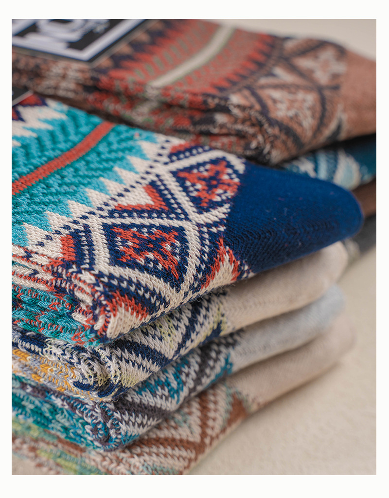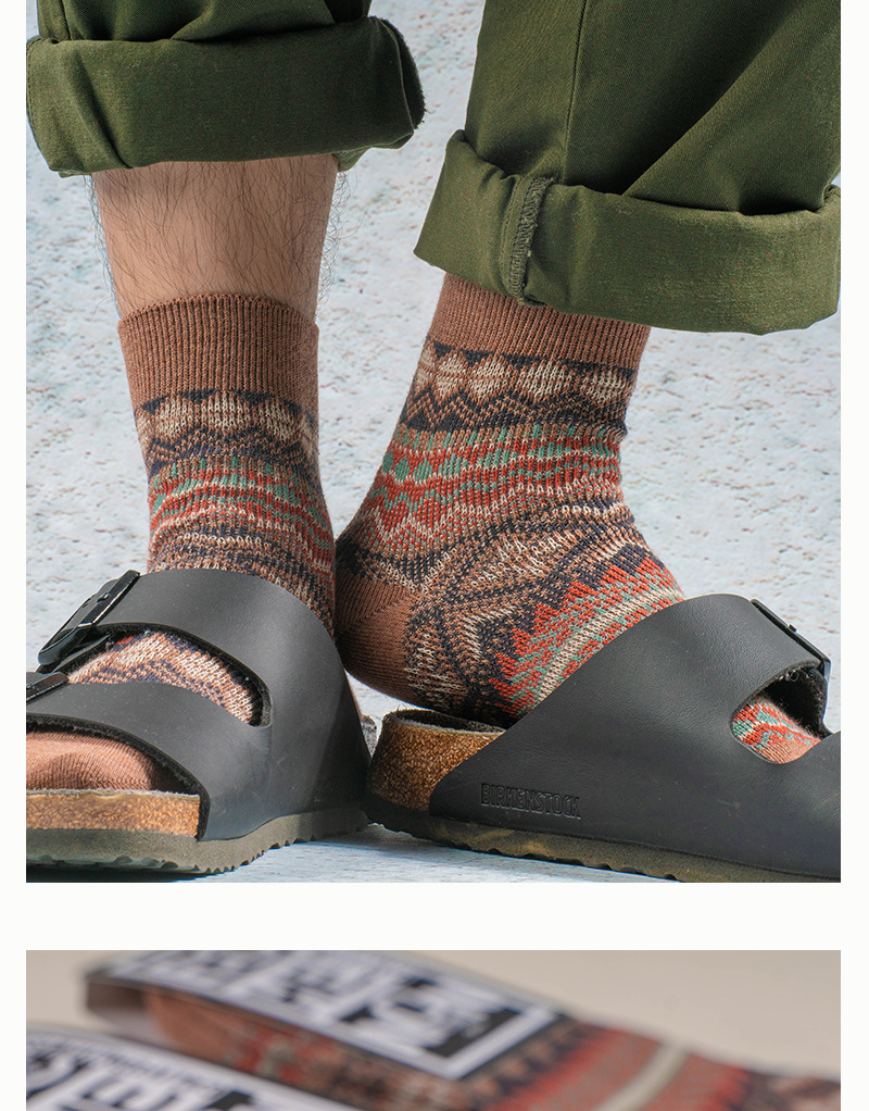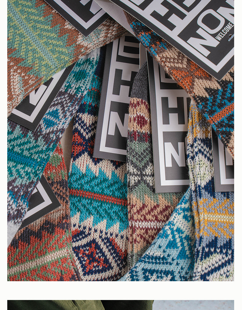 ECHENON 봄과 여름 새로운 양말 남성용 뼈없는 빗질 코튼 레트로 에스닉 스타일 양방향 양말 트렌디 한 스포츠 양말스토어 가기
