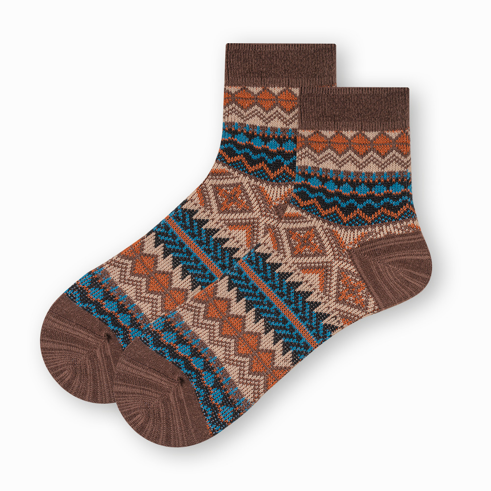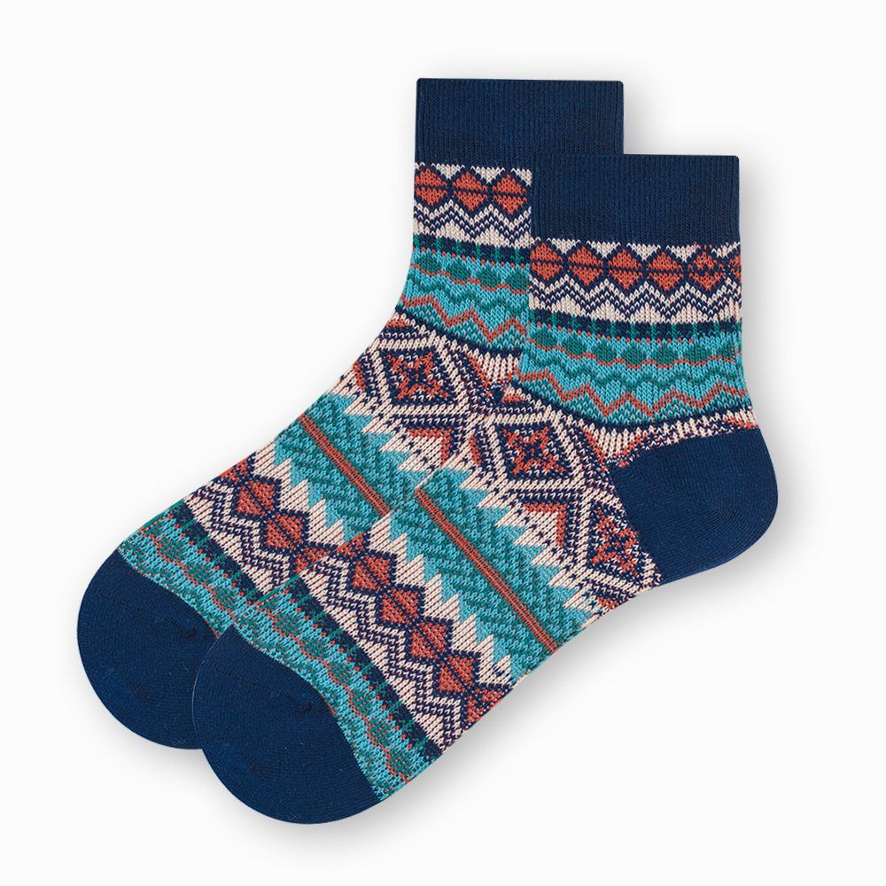 ECHENON 봄과 여름 새로운 양말 남성용 뼈없는 빗질 코튼 레트로 에스닉 스타일 양방향 양말 트렌디 한 스포츠 양말