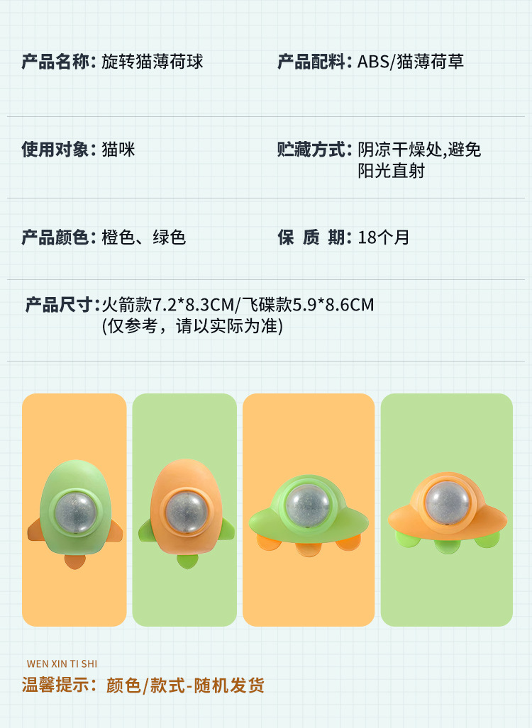 고양이 장난감, 로켓 우주선, 고양이 민트볼, 치아 청소 및 제모볼, 고양이 잔디, 식용 애완용 고양이 장난감