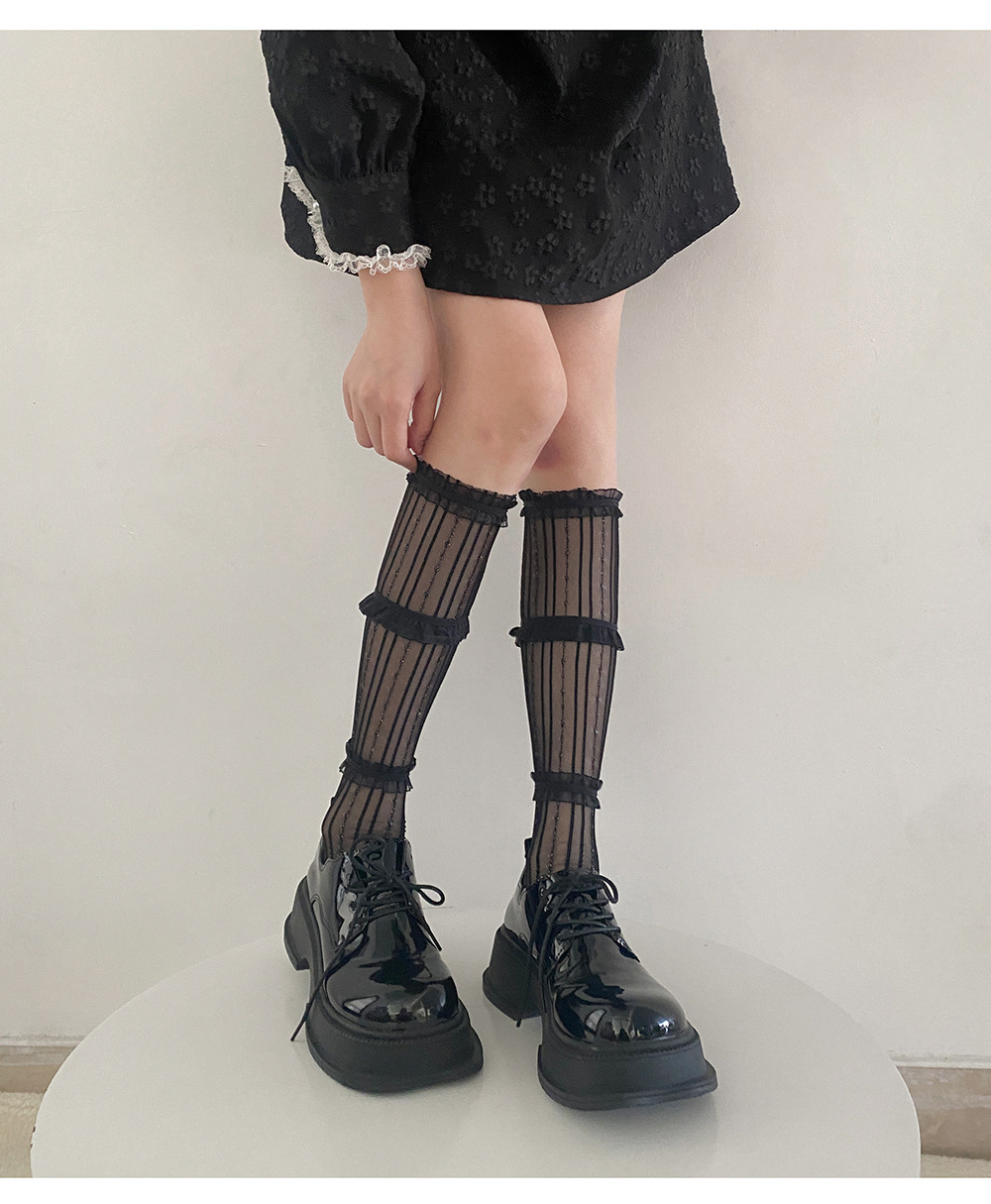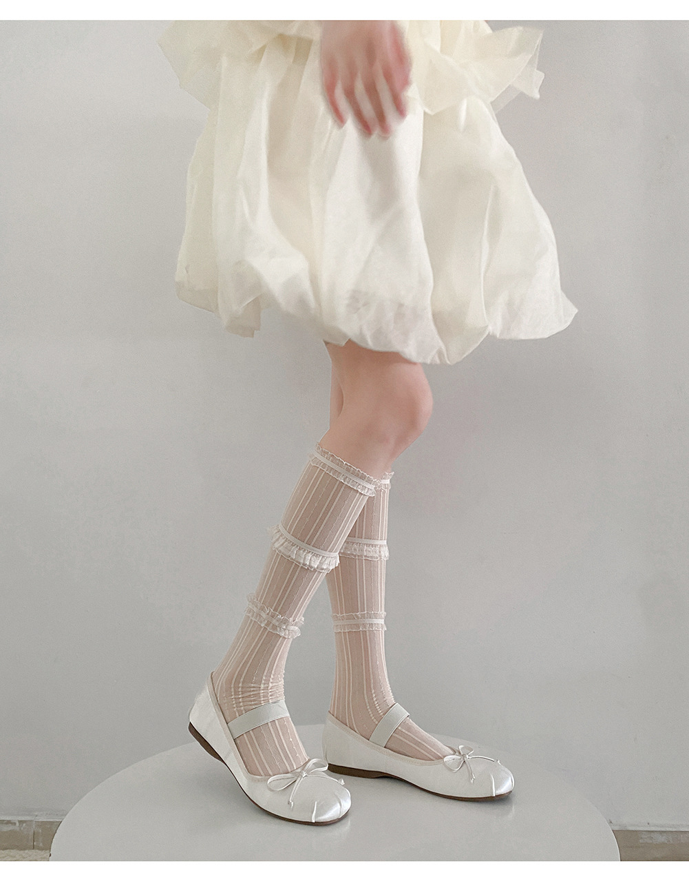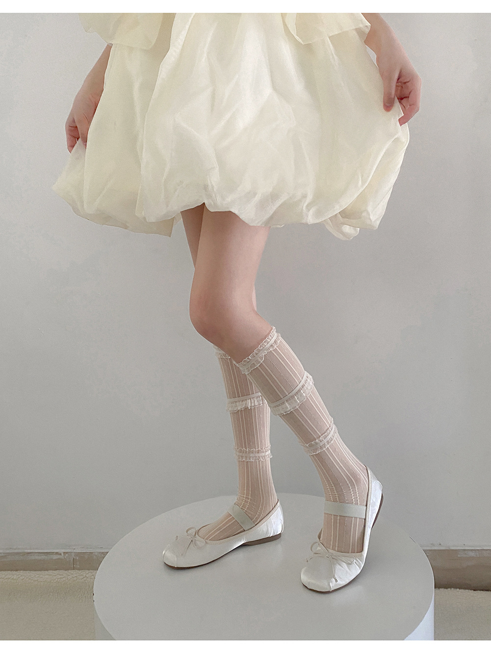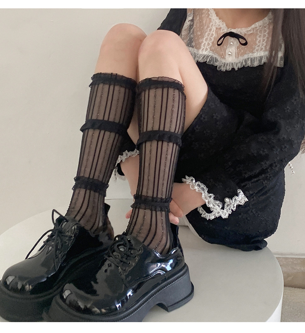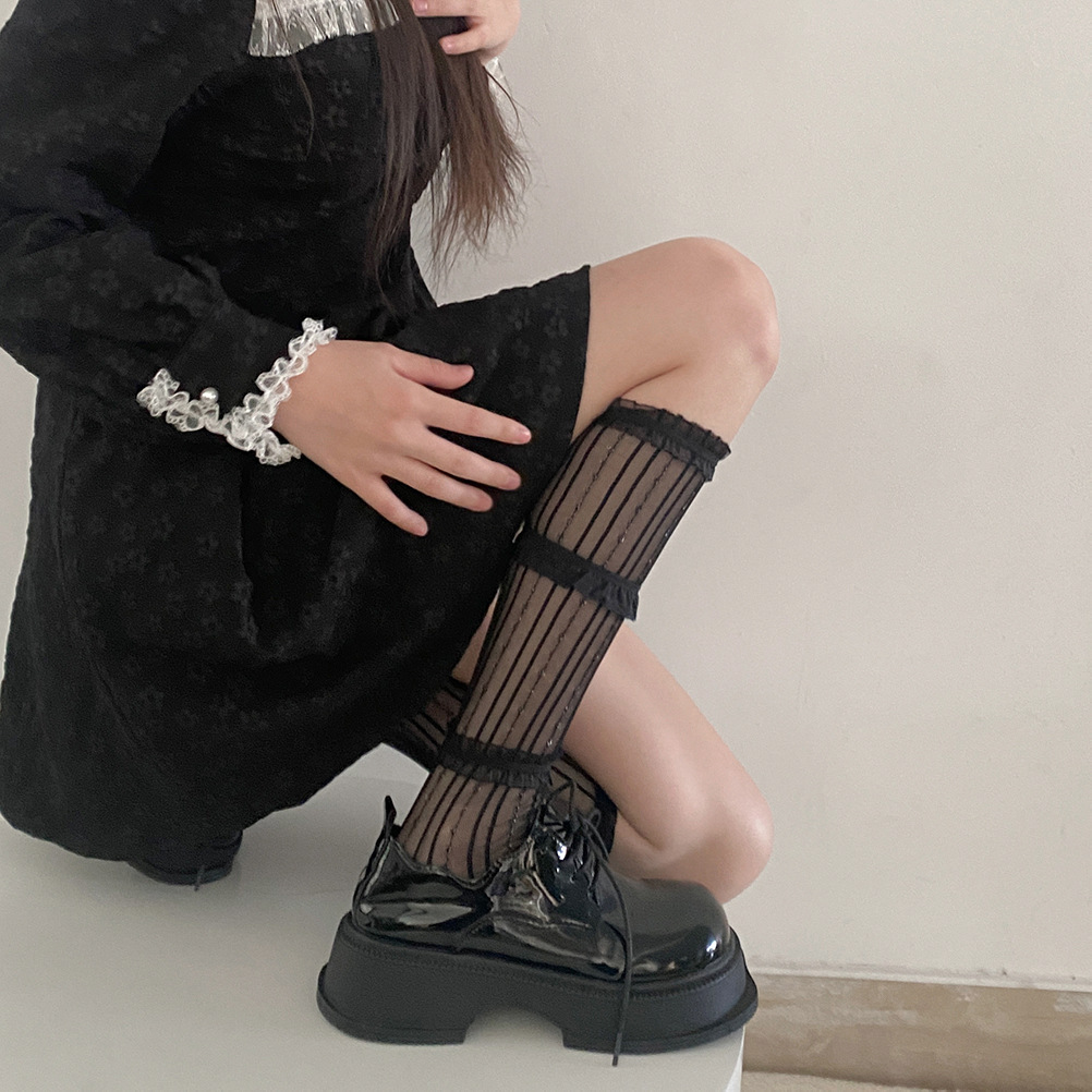 만화 다리 양말 화이트 레이스 3 층 레이스 개인화 된 달콤한 메쉬 여성용 투명 얇은 여름 송아지 양말