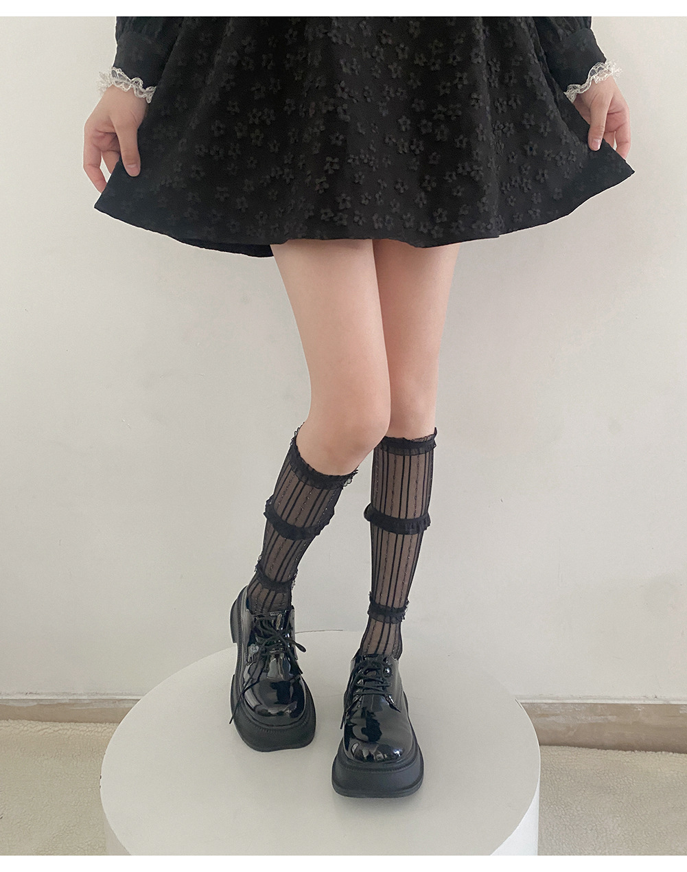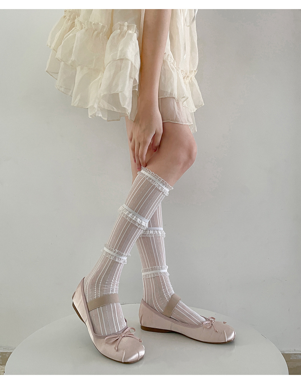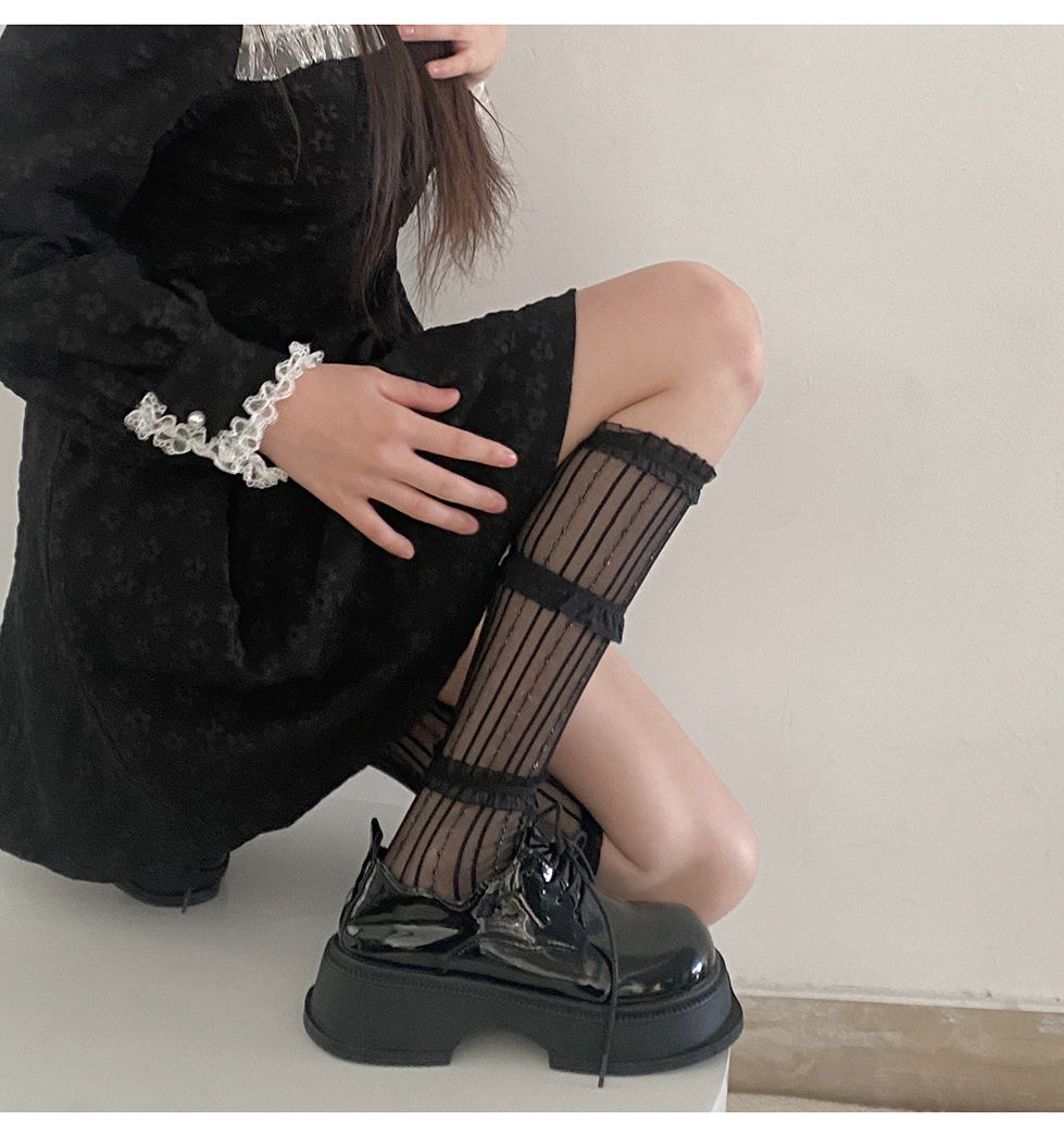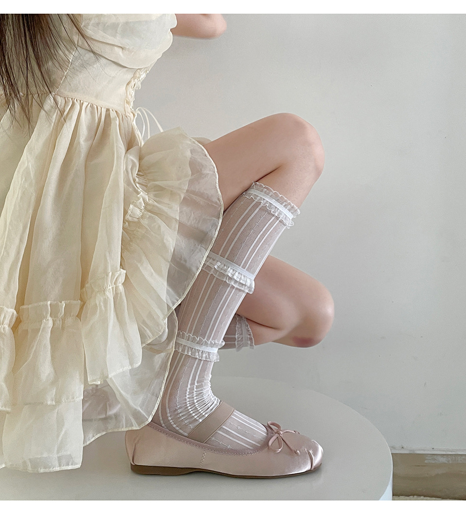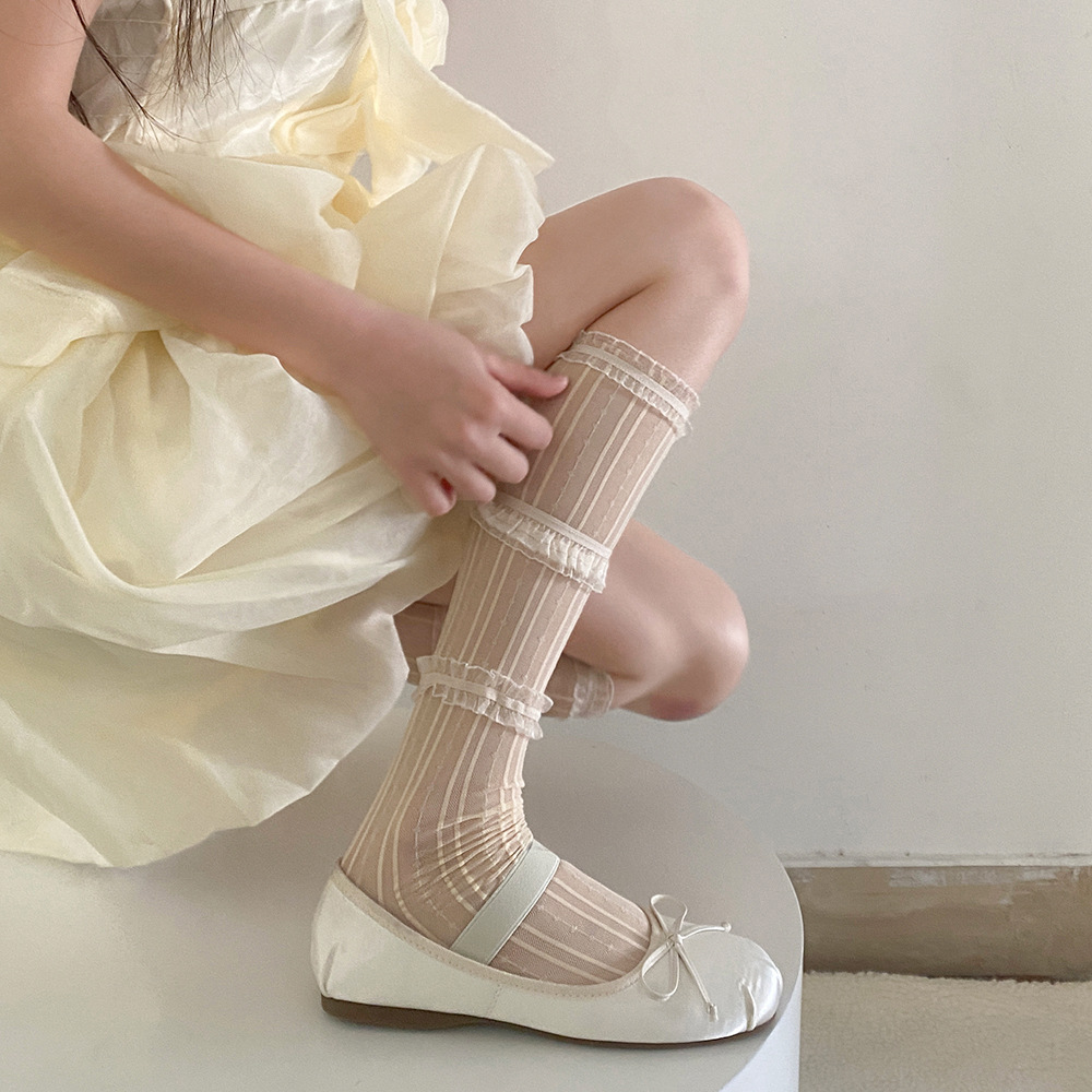 만화 다리 양말 화이트 레이스 3 층 레이스 개인화 된 달콤한 메쉬 여성용 투명 얇은 여름 송아지 양말