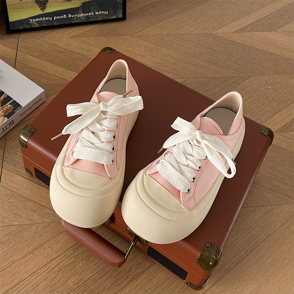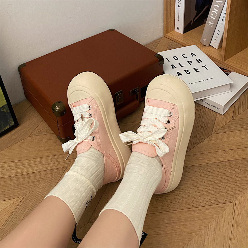 폭발 슈퍼 파이어 두꺼운 바닥 캔버스 신발 여성용 2023 새로운 봄과 가을 홍콩 스타일 학생 경량 흰색 신발 모든 매치 보드 신발스토어 가기