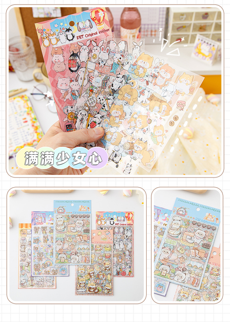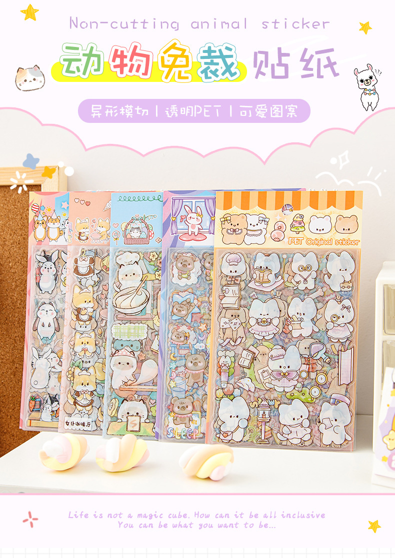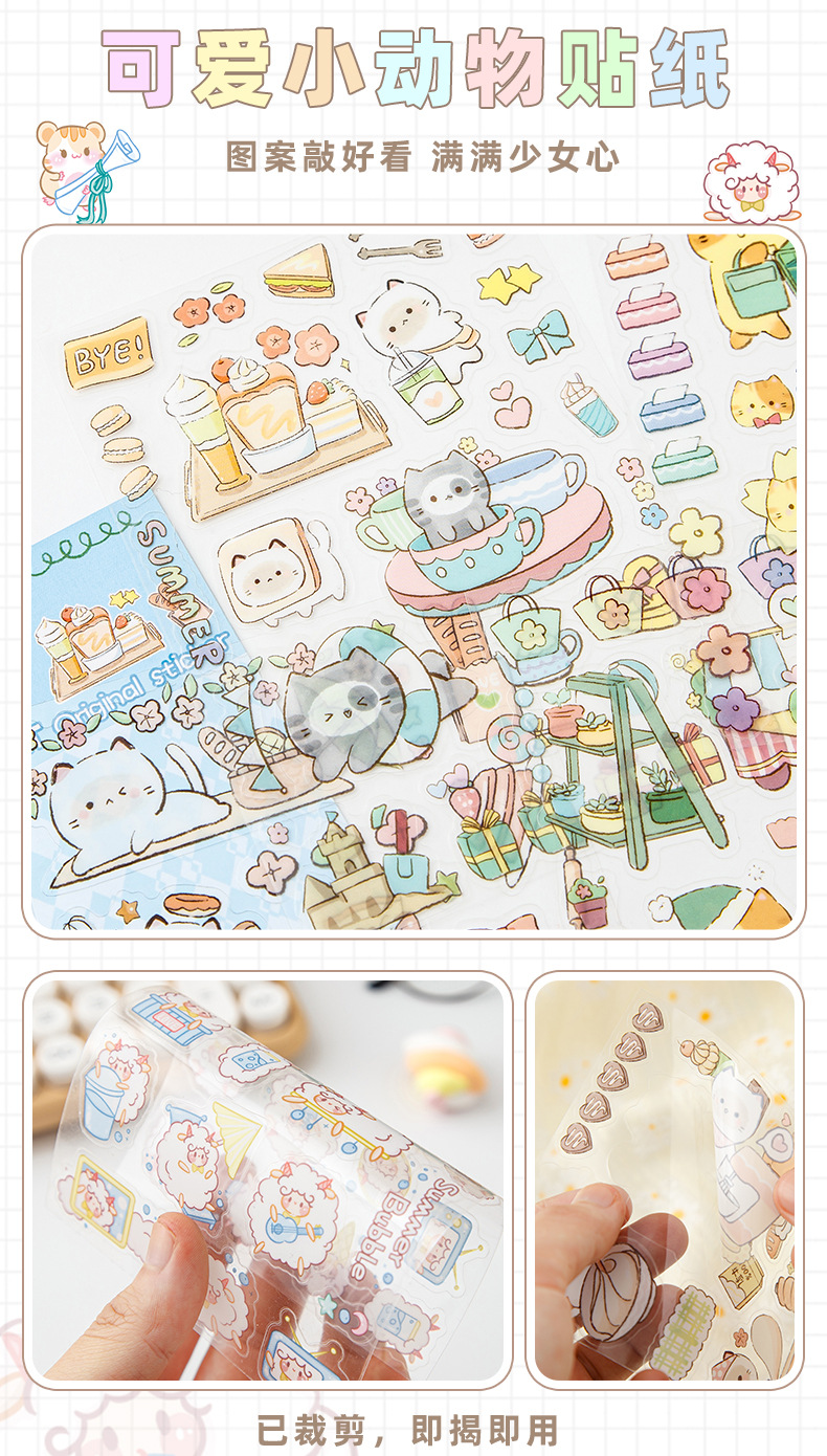 귀여운 손 계정 스티커 도매 만화 어린이 PET 방수 장식 물 컵 일기 스티커 in 바람 손 계정 스티커스토어 가기