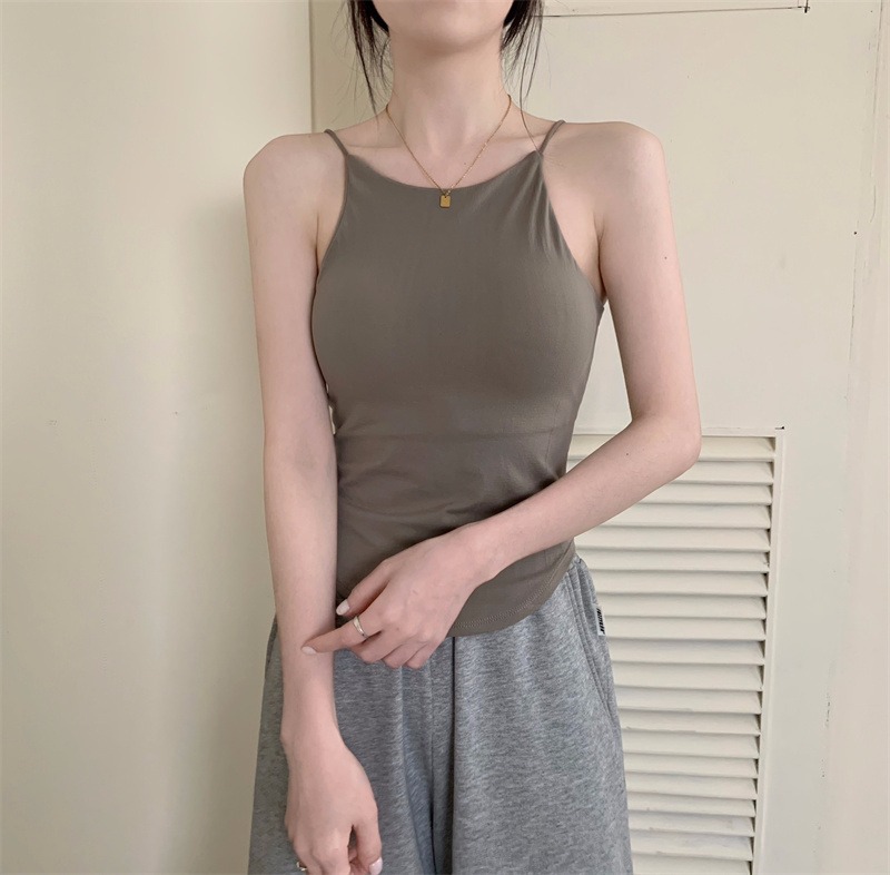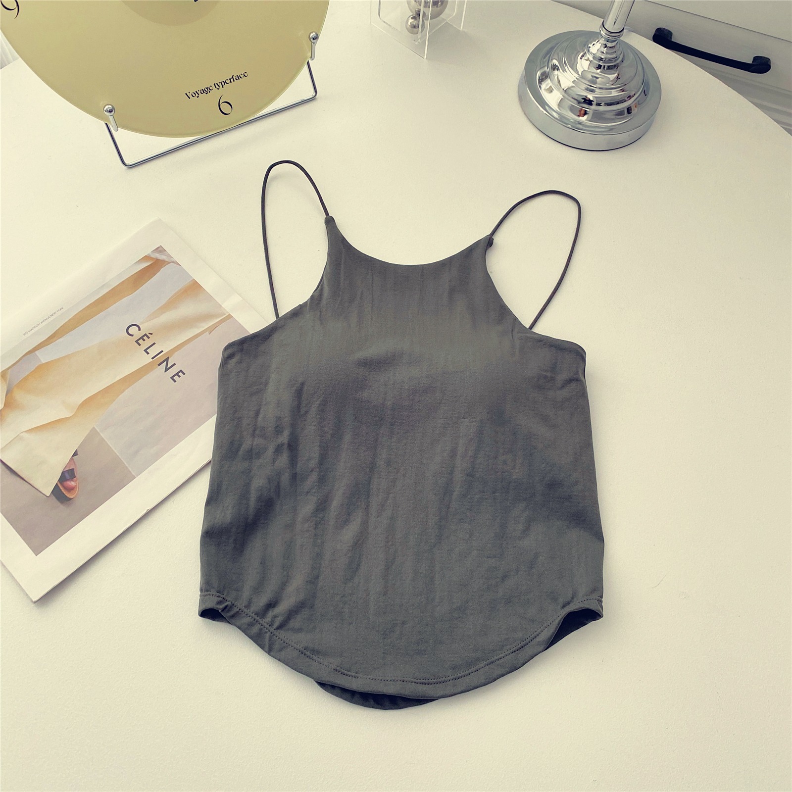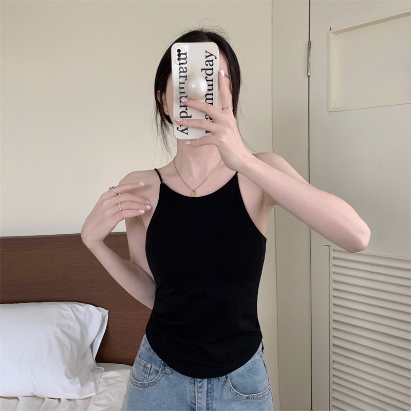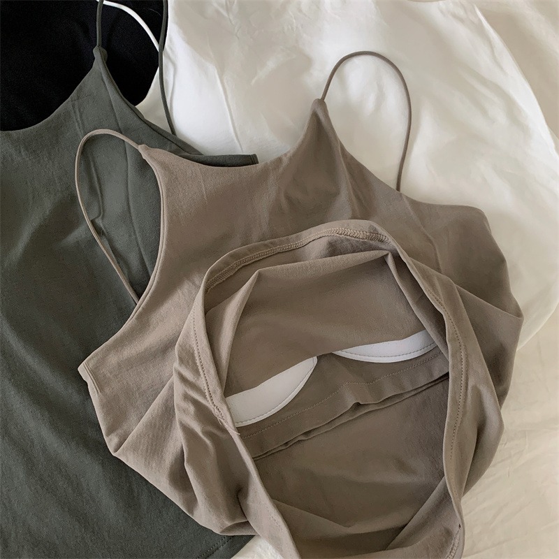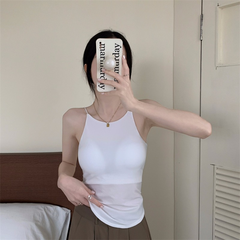 여성용 프렌치 시크 화이트 캐미솔, 가슴 패드가 있는 여름 하의, 민소매 숏탑스토어 가기