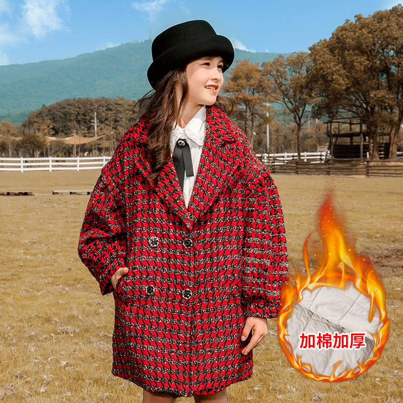 여아 격자 무늬 코트 2025 가을 겨울 새로운 스타일 아동용 물떼새 격자 두꺼운 누비 양털 코트 중대형 어린이스토어 가기