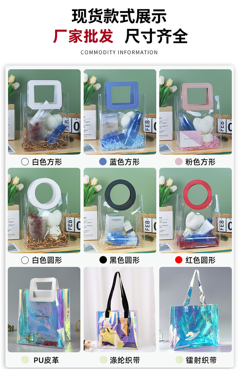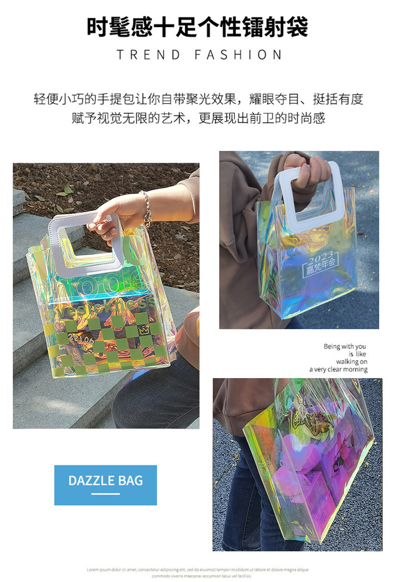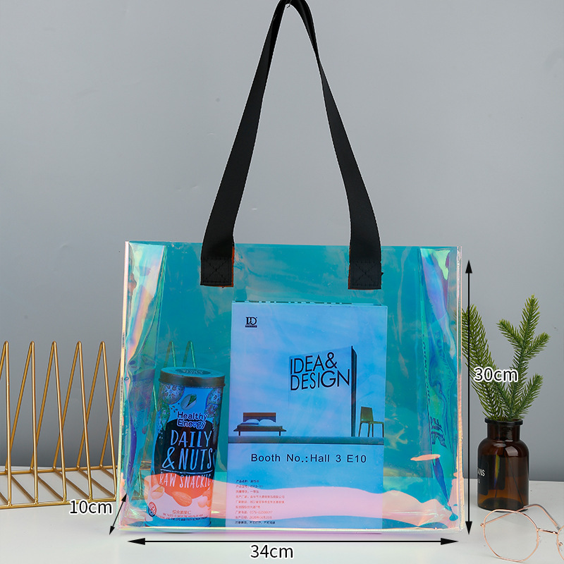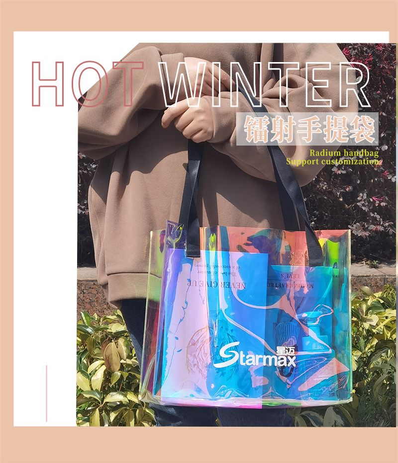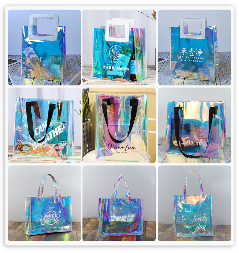 맞춤형 로고 투명 젤리 포장 플라스틱 선물 가방 PVC 레이저 가방스토어 가기
