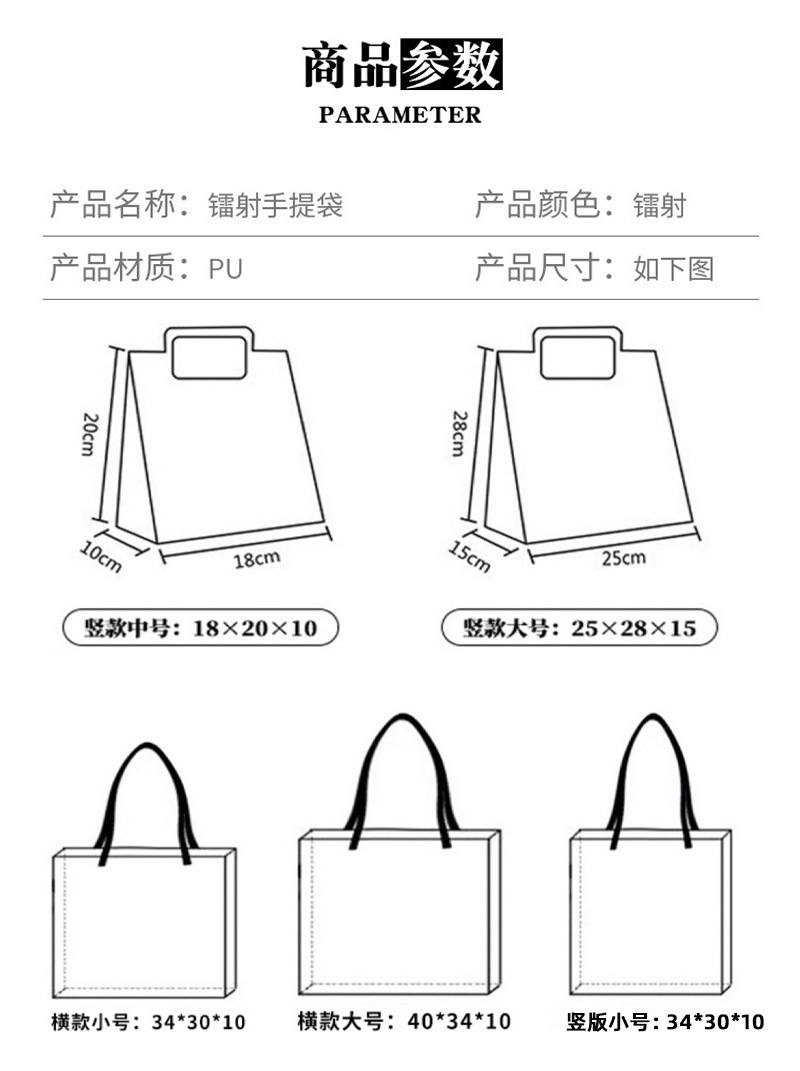 • 대형 레이저 가죽 핸드백;28/25/15;14*12