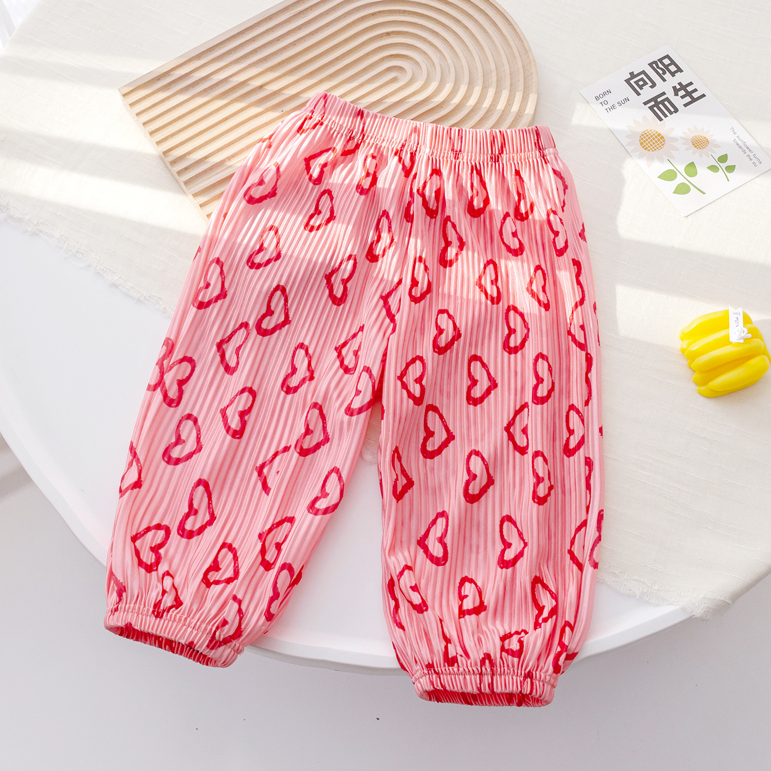 여아 여름 새로운 서양식 모기 방지 바지 한국 프린트 플리츠 캐주얼 바지 베이비 블루머 여름 트렌디 바지