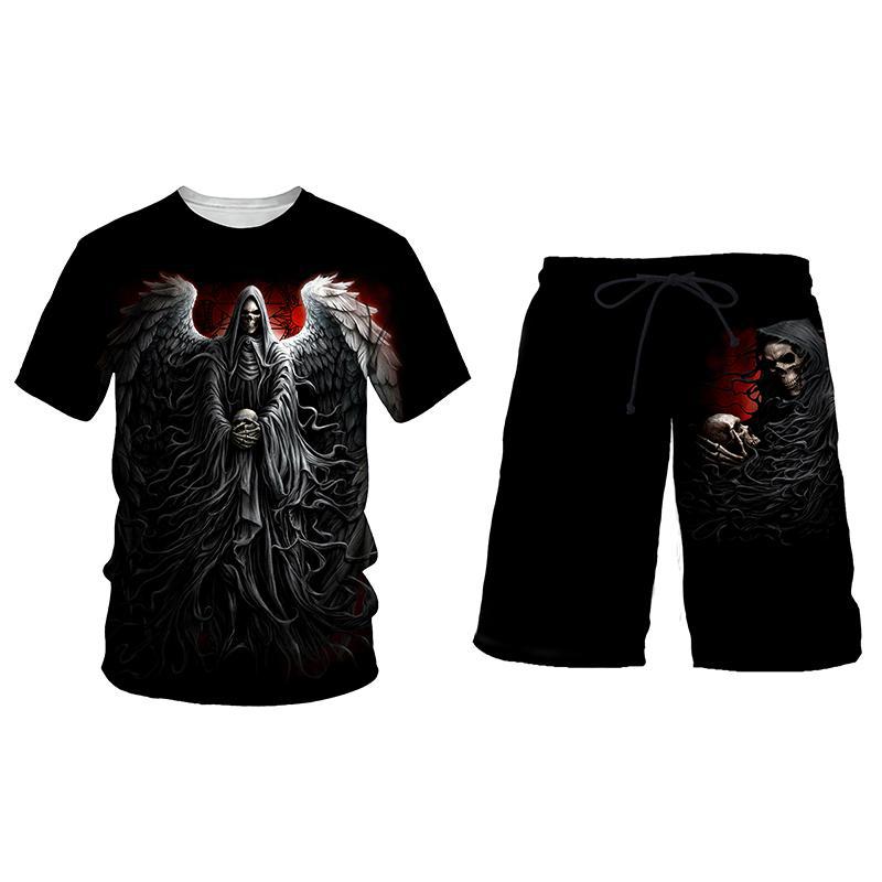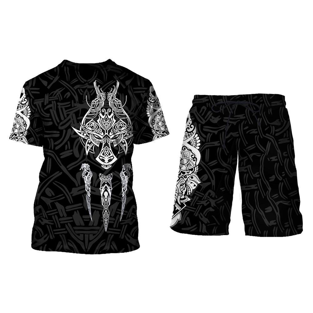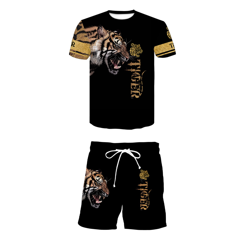 남자 세트 티셔츠 뜨거운 판매 국경 3D 디지털 인쇄 사자 호랑이 패턴 남자 레저 스포츠 세트스토어 가기
