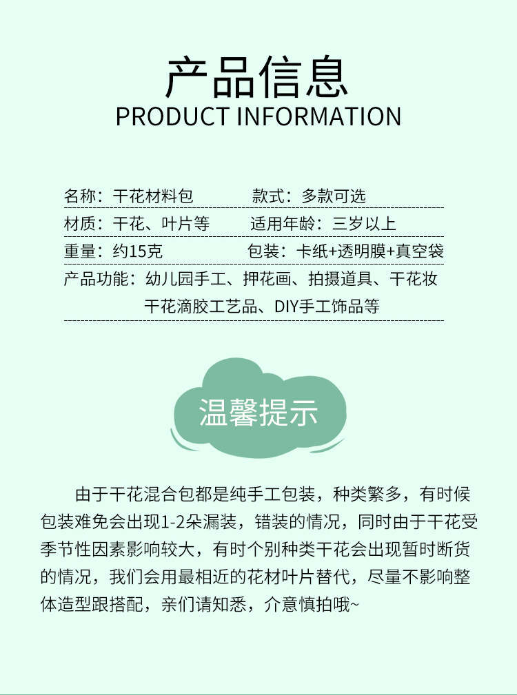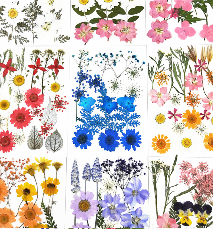 DIY 꽃 혼합 말린 꽃 잎 가방 부모-자식 수동 드롭 접착제 말린 꽃 재료 가방 양각 실제 꽃 식물 표본스토어 가기