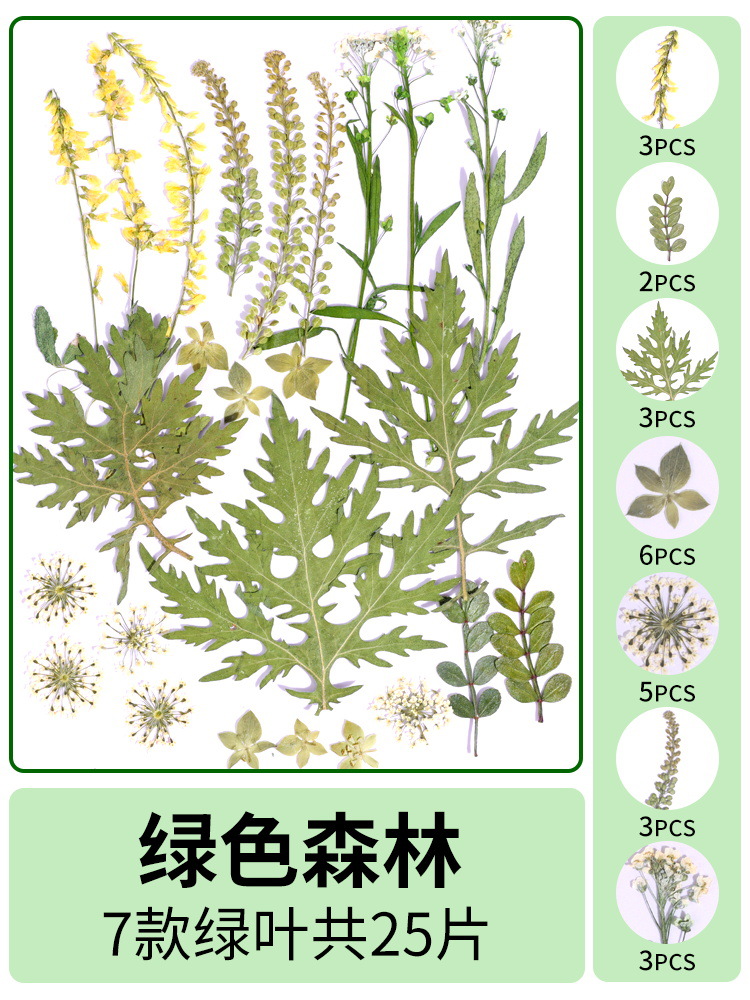 • 녹색 깊은 숲 말린 꽃 25 조각