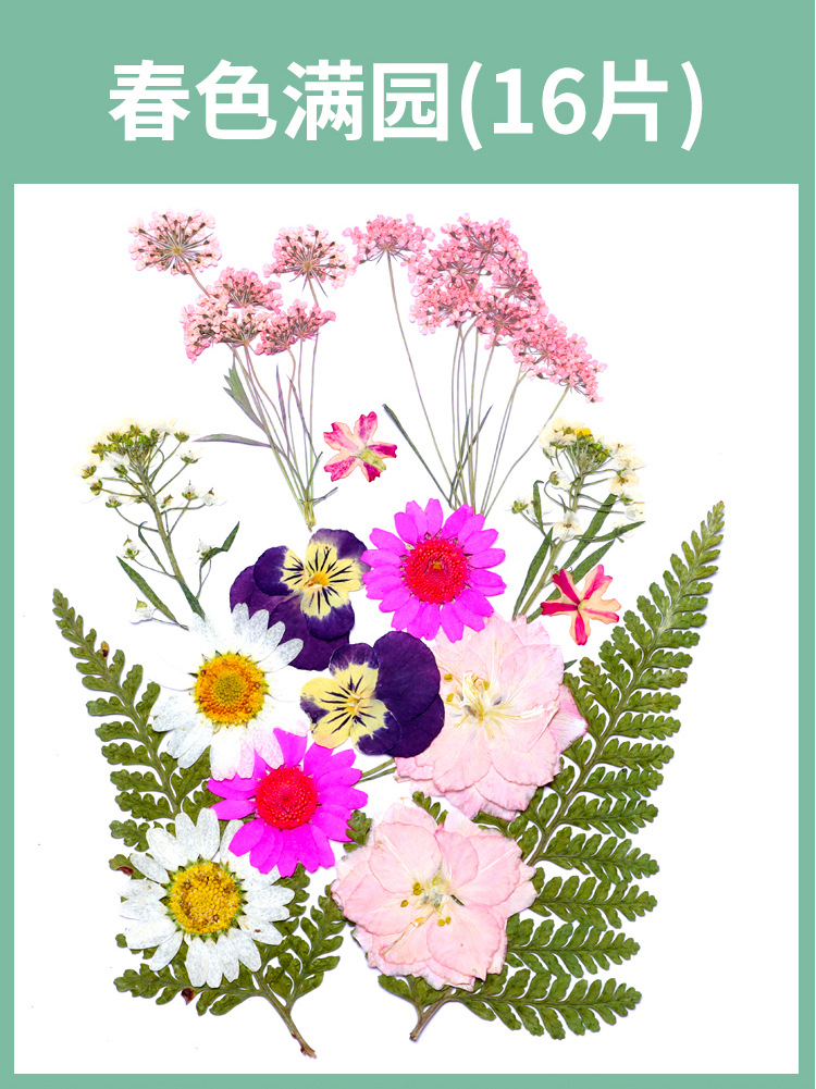 DIY 꽃 혼합 말린 꽃 잎 가방 부모-자식 수동 드롭 접착제 말린 꽃 재료 가방 양각 실제 꽃 식물 표본