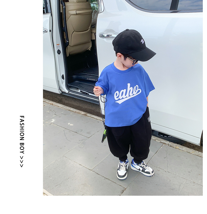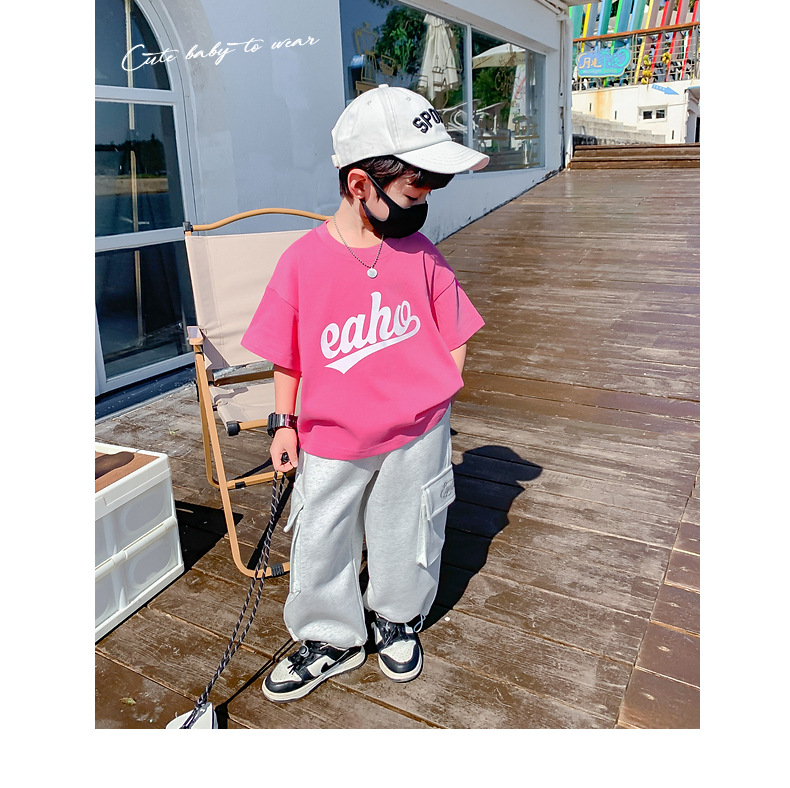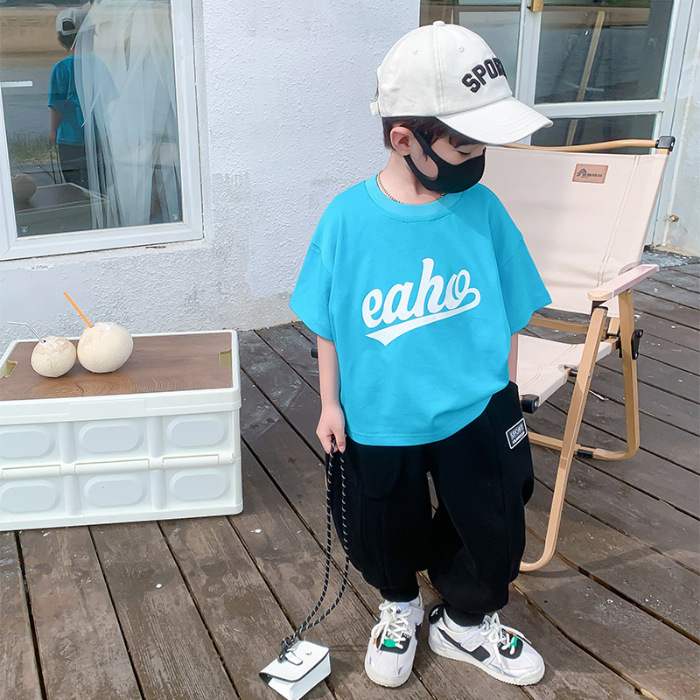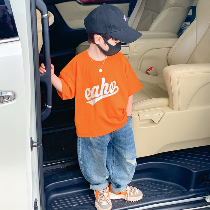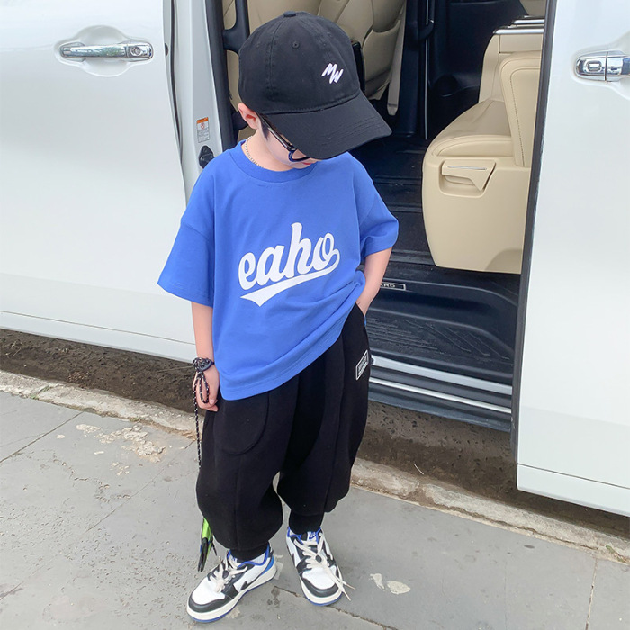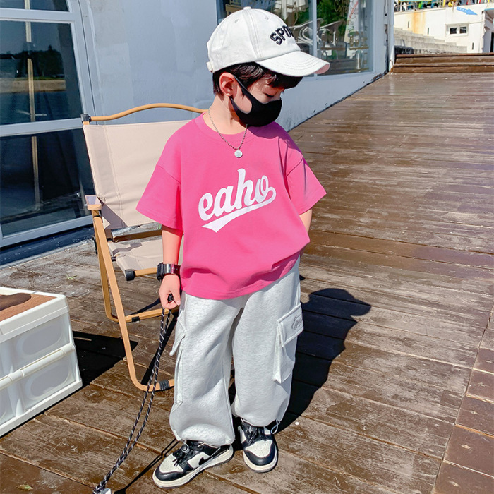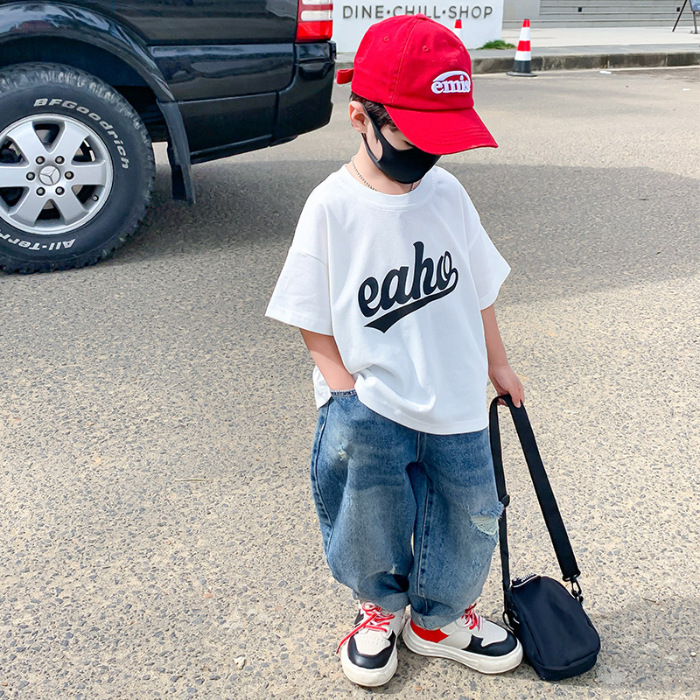 소년 티셔츠 여름 2023 새로운 어린이 멋진 잘 생긴 유행 브랜드 튀김 거리 여름 유행 한국 티셔츠 반팔 탑