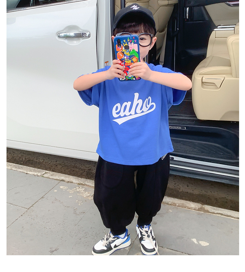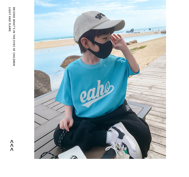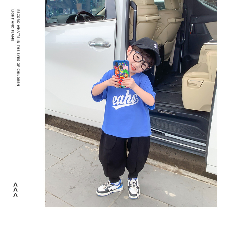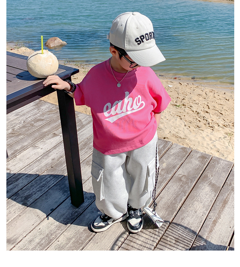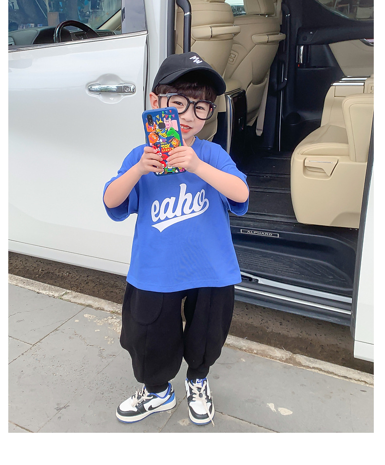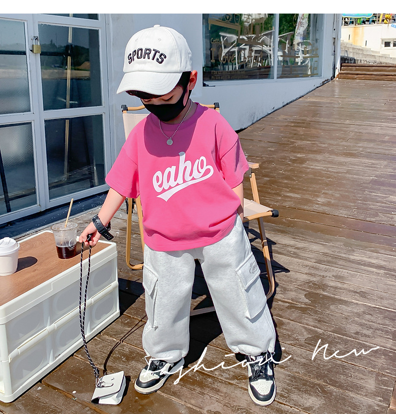 소년 티셔츠 여름 2023 새로운 어린이 멋진 잘 생긴 유행 브랜드 튀김 거리 여름 유행 한국 티셔츠 반팔 탑