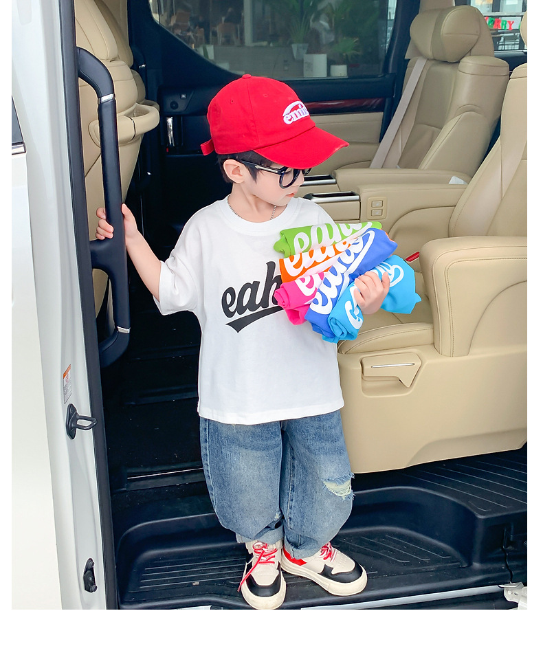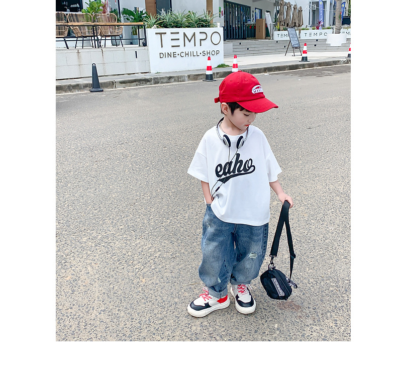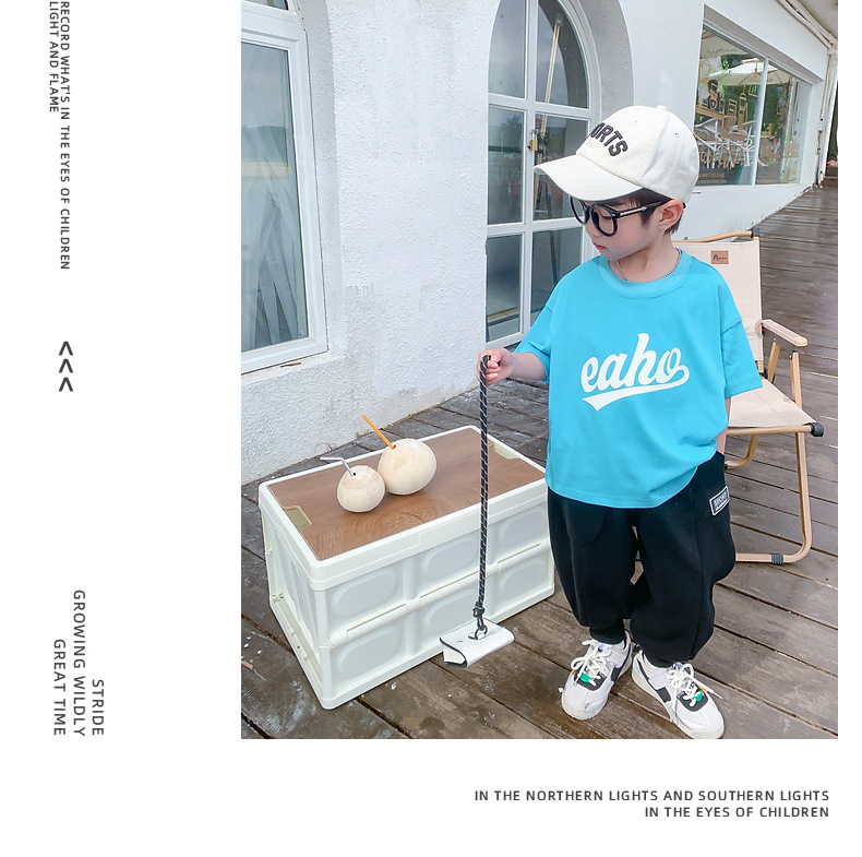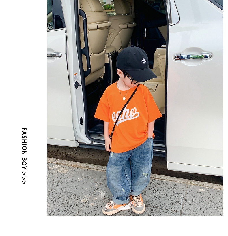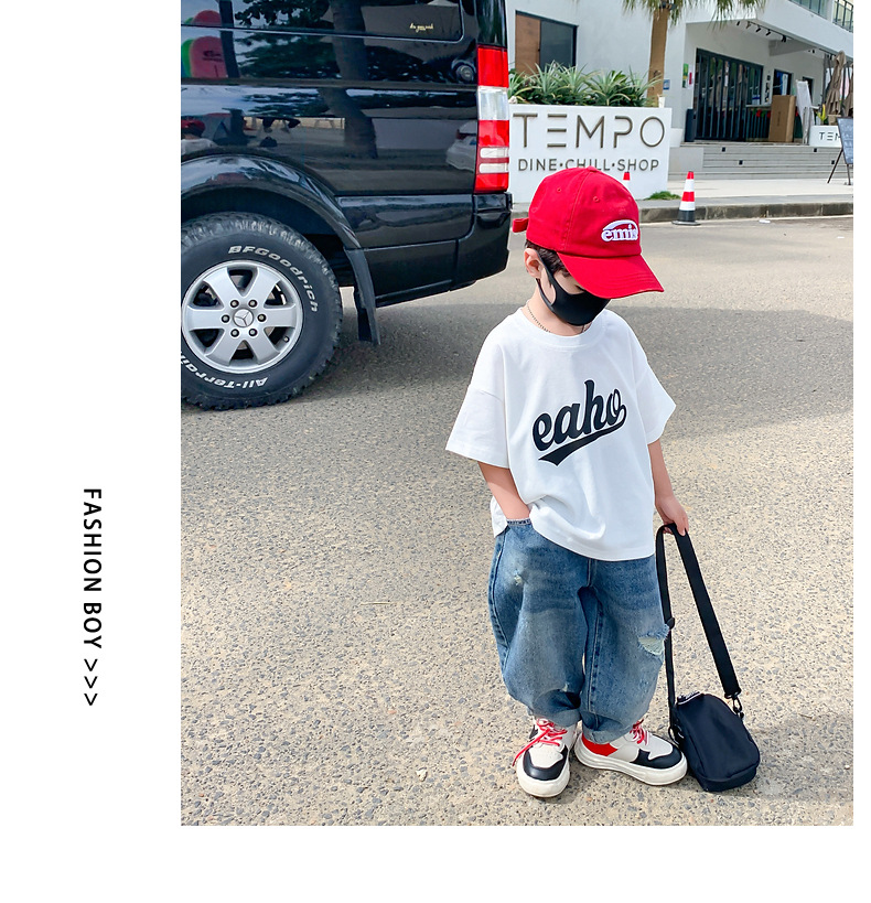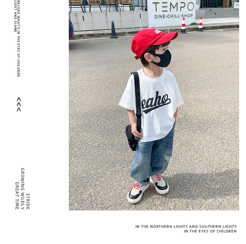 소년 티셔츠 여름 2023 새로운 어린이 멋진 잘 생긴 유행 브랜드 튀김 거리 여름 유행 한국 티셔츠 반팔 탑스토어 가기
