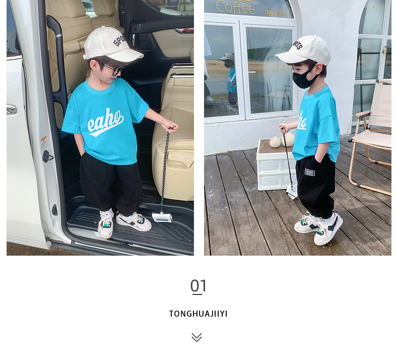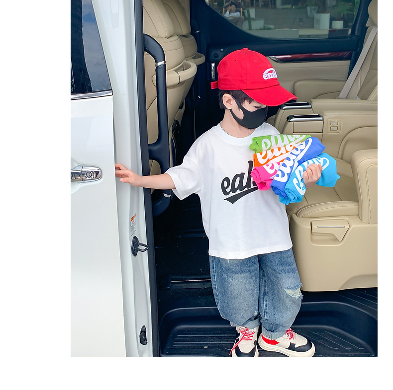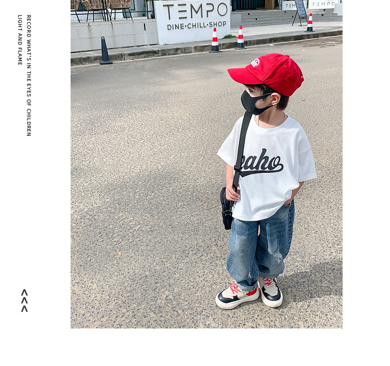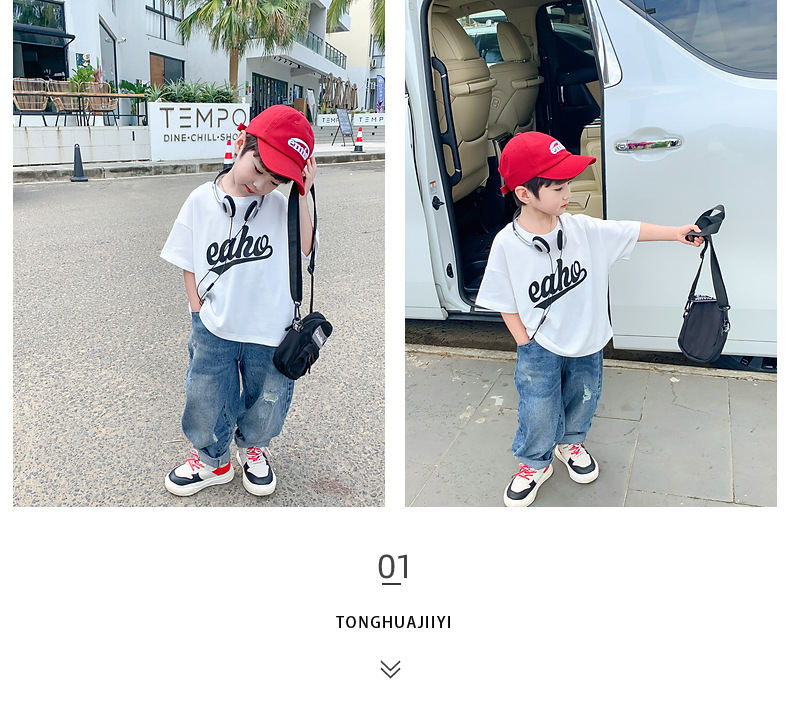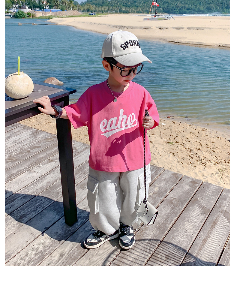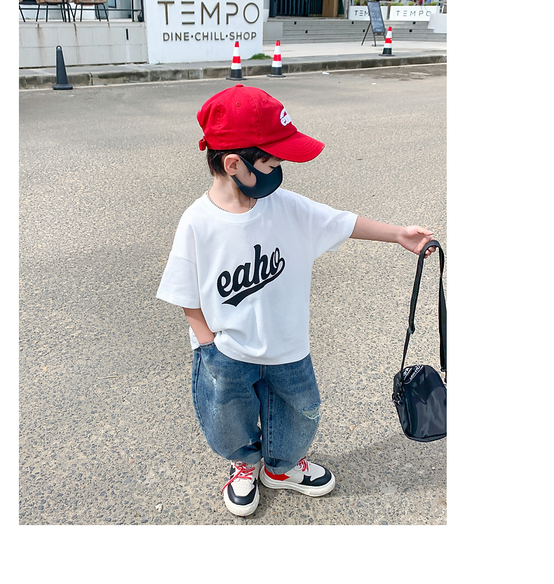 소년 티셔츠 여름 2023 새로운 어린이 멋진 잘 생긴 유행 브랜드 튀김 거리 여름 유행 한국 티셔츠 반팔 탑스토어 가기